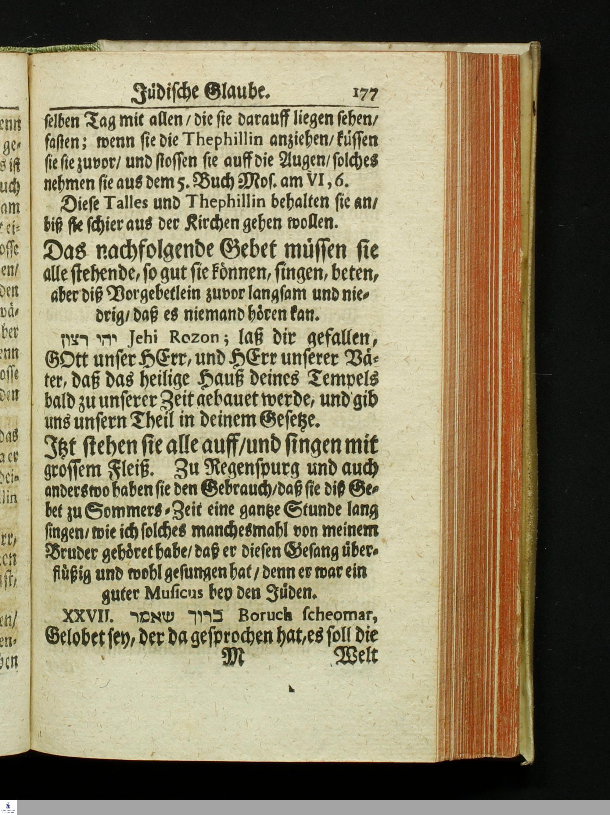 Der gantze Jüdische Glaube : Mit samt einer gründlichen und wahrhafftigen Anzeigung aller Satzungen, Ceremonien, Gebeten, heimlich- und öffentlichen Gebräuchen, deren sich die Jüden das gantze Jahr über bedienen : nebst schönen und gegründeten Argumenten wider ihren Glauben / beschrieben und zusammen getragen von Antonio Margaritha, einem bekehrten Jüden/ und weiland Lectore oder Lesern der Hebräischen Sprache bey der Hochlöbl. Universität Leipzig