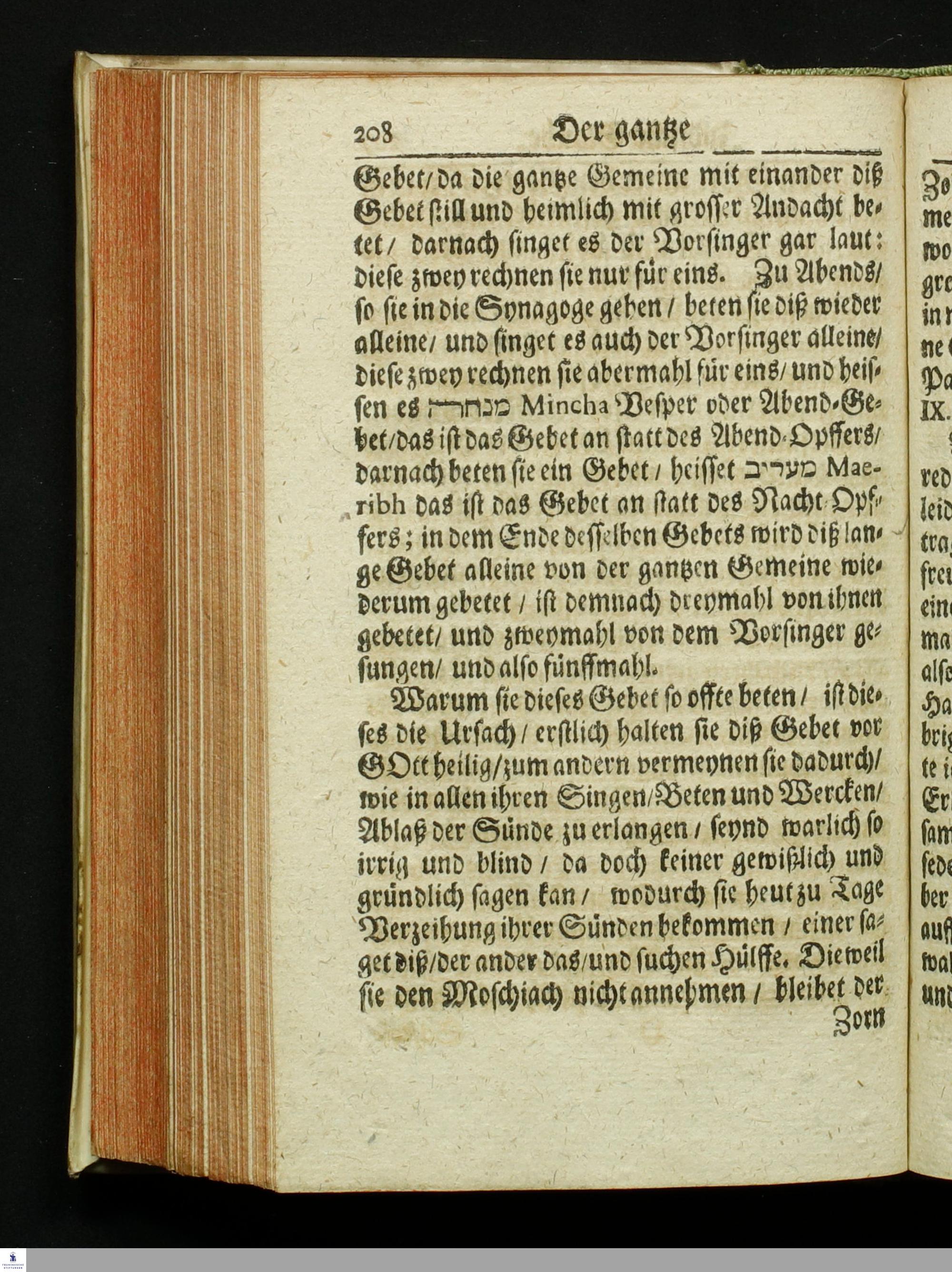 Der gantze Jüdische Glaube : Mit samt einer gründlichen und wahrhafftigen Anzeigung aller Satzungen, Ceremonien, Gebeten, heimlich- und öffentlichen Gebräuchen, deren sich die Jüden das gantze Jahr über bedienen : nebst schönen und gegründeten Argumenten wider ihren Glauben / beschrieben und zusammen getragen von Antonio Margaritha, einem bekehrten Jüden/ und weiland Lectore oder Lesern der Hebräischen Sprache bey der Hochlöbl. Universität Leipzig
