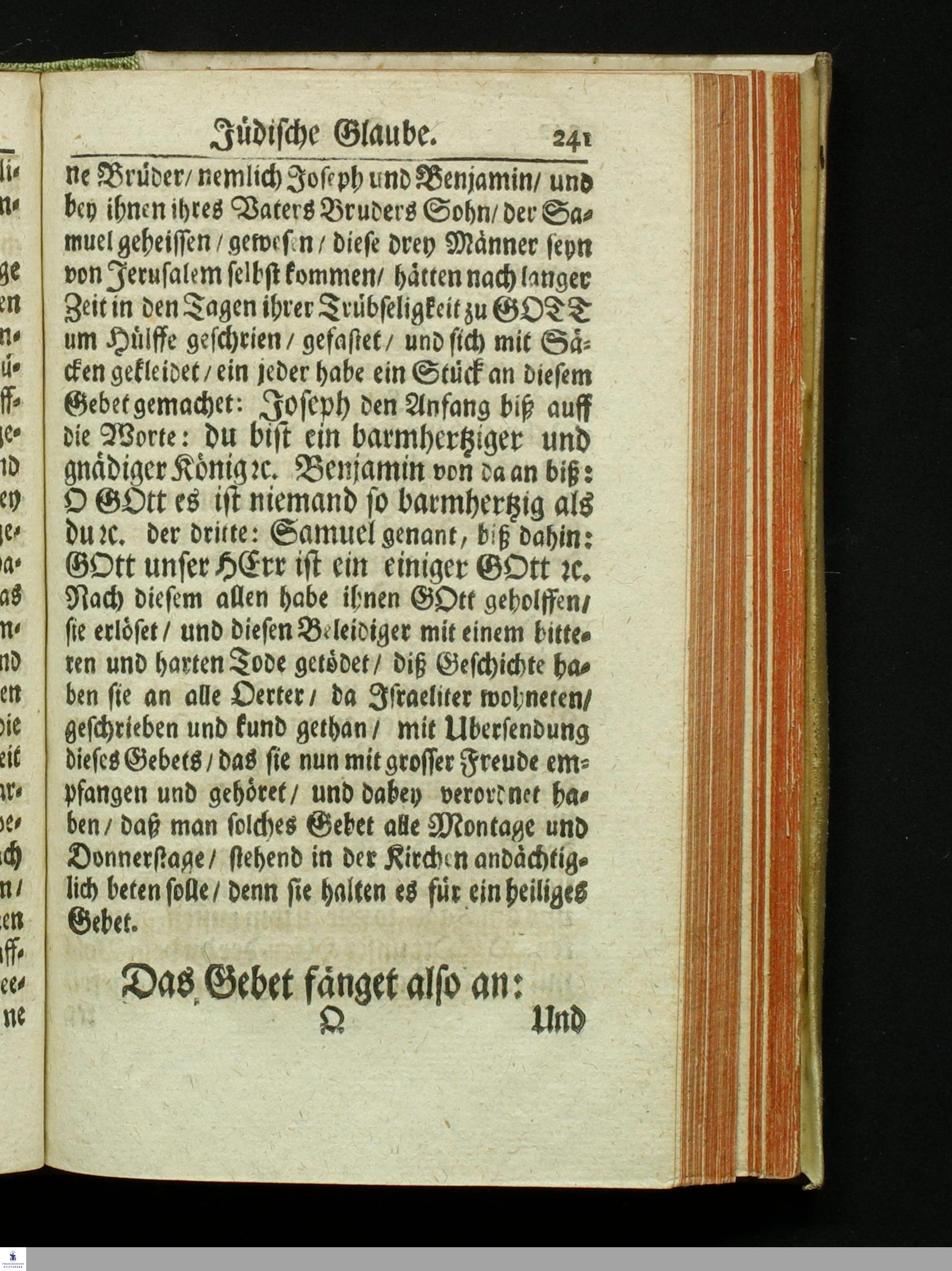 Der gantze Jüdische Glaube : Mit samt einer gründlichen und wahrhafftigen Anzeigung aller Satzungen, Ceremonien, Gebeten, heimlich- und öffentlichen Gebräuchen, deren sich die Jüden das gantze Jahr über bedienen : nebst schönen und gegründeten Argumenten wider ihren Glauben / beschrieben und zusammen getragen von Antonio Margaritha, einem bekehrten Jüden/ und weiland Lectore oder Lesern der Hebräischen Sprache bey der Hochlöbl. Universität Leipzig