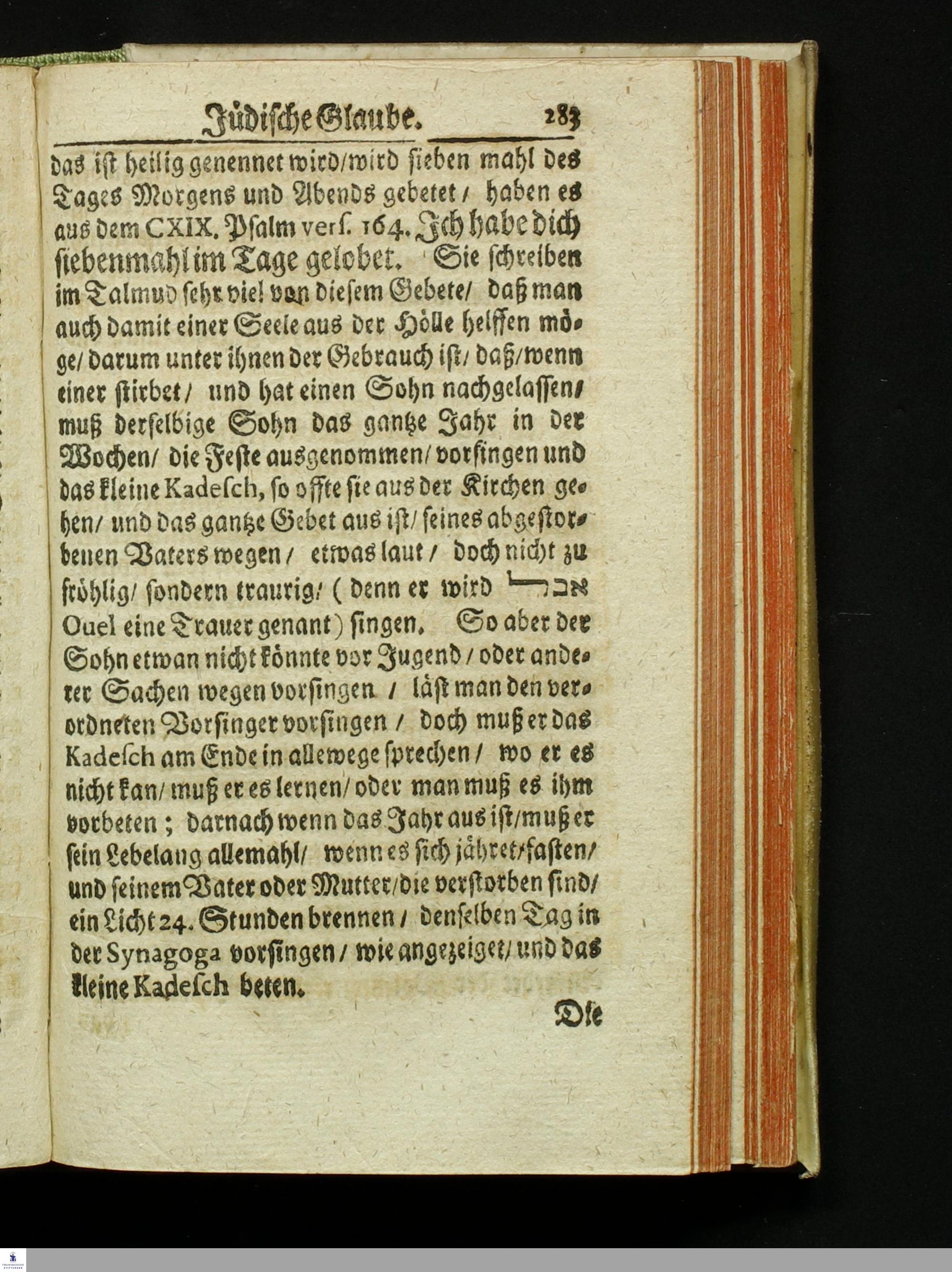 Der gantze Jüdische Glaube : Mit samt einer gründlichen und wahrhafftigen Anzeigung aller Satzungen, Ceremonien, Gebeten, heimlich- und öffentlichen Gebräuchen, deren sich die Jüden das gantze Jahr über bedienen : nebst schönen und gegründeten Argumenten wider ihren Glauben / beschrieben und zusammen getragen von Antonio Margaritha, einem bekehrten Jüden/ und weiland Lectore oder Lesern der Hebräischen Sprache bey der Hochlöbl. Universität Leipzig