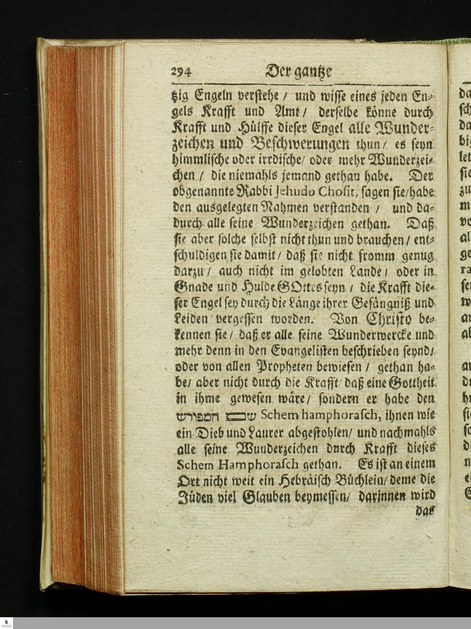 Der gantze Jüdische Glaube : Mit samt einer gründlichen und wahrhafftigen Anzeigung aller Satzungen, Ceremonien, Gebeten, heimlich- und öffentlichen Gebräuchen, deren sich die Jüden das gantze Jahr über bedienen : nebst schönen und gegründeten Argumenten wider ihren Glauben / beschrieben und zusammen getragen von Antonio Margaritha, einem bekehrten Jüden/ und weiland Lectore oder Lesern der Hebräischen Sprache bey der Hochlöbl. Universität Leipzig