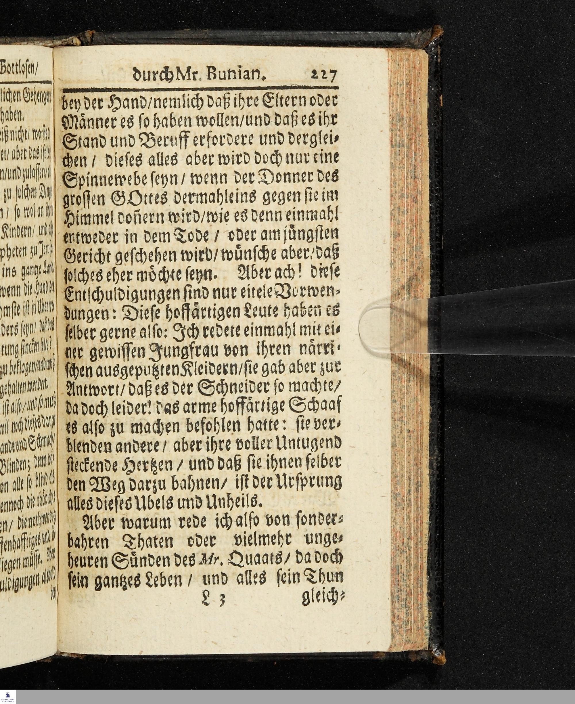 Mr. Qaats Leben und Sterben/ Oder Eines gottlosen Reise nach dem ewigen Verderben : Vorstellend den gantzen Zustand einer unwiedergebohrnen Seele/ Durch unterschiedliche darzu dienende Geschichte / Anfangs in Englischer Sprache beschrieben durch M. Johannes Bunjan. Folgends in Hollandische und nunmehr in Hochteutsche Sprache übersetzet durch J.L.M.C.