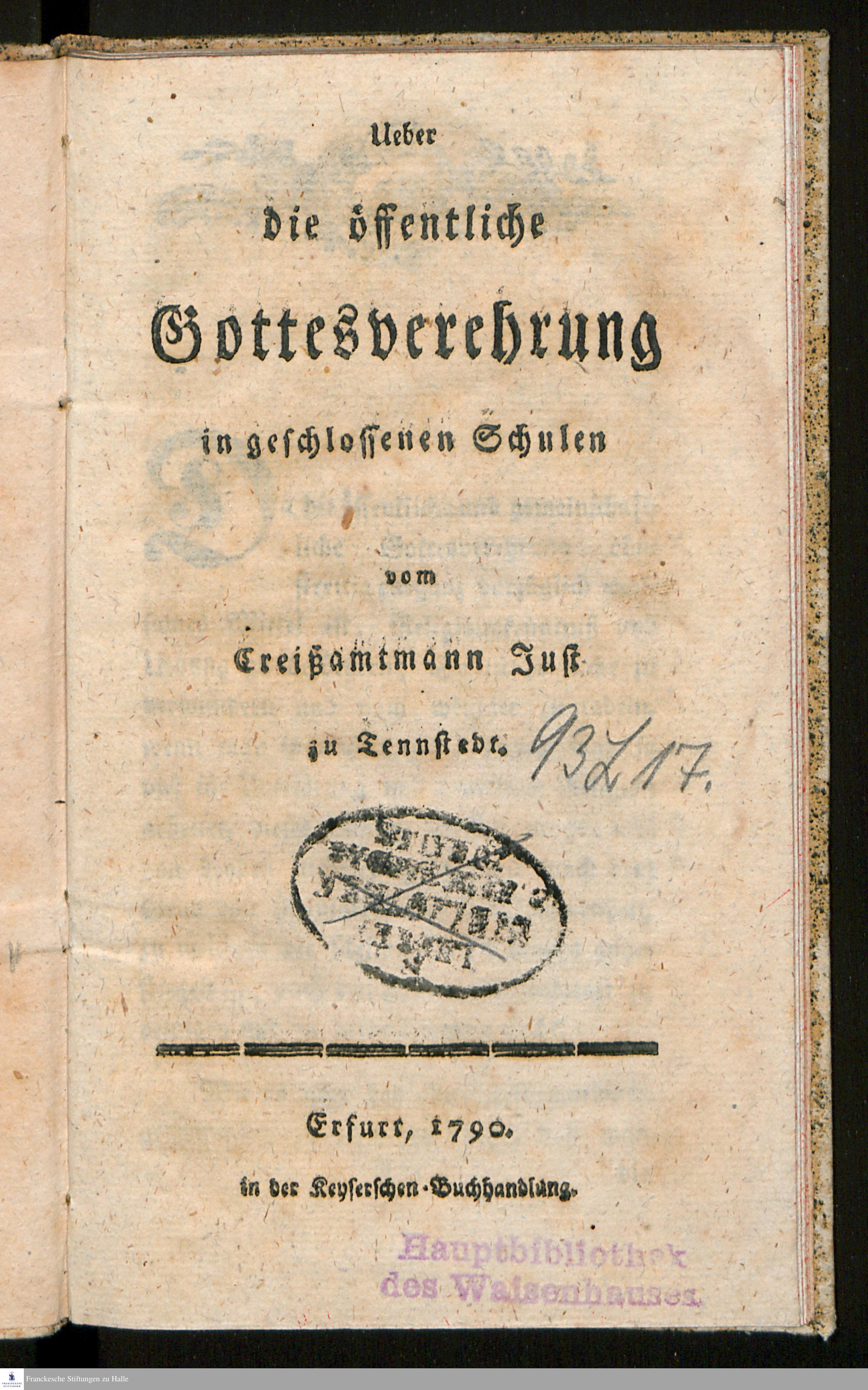 Ueber die öffentliche Gottesverehrung in geschlossenen Schulen / von Creißamtmann Just zu Tennstedt