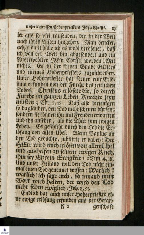Die Lehre Von dem Opfer-Blute Unsers grossen Hohenpriesters Jesu Christi, Aus Ebr. 9, v. 11.-14. Jn Einigen Paßions-Predigten Jn der Schloss-Kirche zu Wernigerode erwogen : Hernach in Kurtze Betrachtungen verfasset Und auf vieler Zuhörer Verlangen im Druck gegeben / Von Johann August Seydlitz/ Hof-Diacono