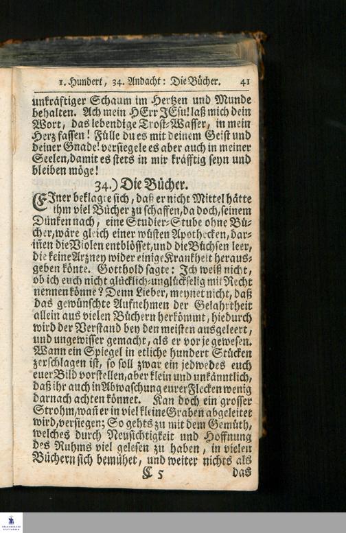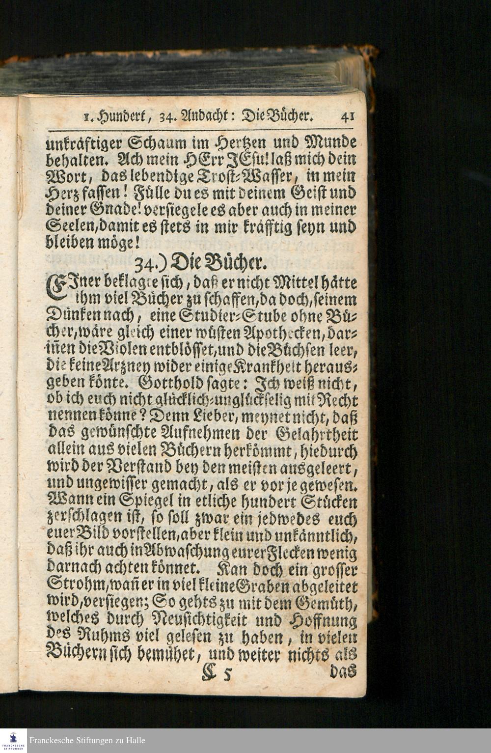 Gottholds Zufälliger Andachten Vier Hundert : Vorjetzo Mit erbaulichen Morgen- und Abend-Gebetern auf alle Tage der Wochen, Samt gedoppeltem sehr nutzlichem Register versehen / Bey Betrachtung mancherley Dinge der Kunst und Natur/ in unterschiedenen Veranlassungen Zur Ehre GOttes, Besserung des Gemüths, und Uebung der Gottseligkeit, geschöpffet, Aufgefasset und entworfen von M. Christian Scrivern, Weiland Fürstlich-Sächsischen Ober-Hof-Prediger und Consistorial-Rath zu Quedlinburg