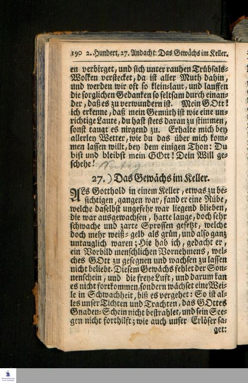 Gottholds Zufälliger Andachten Vier Hundert : Vorjetzo Mit erbaulichen Morgen- und Abend-Gebetern auf alle Tage der Wochen, Samt gedoppeltem sehr nutzlichem Register versehen / Bey Betrachtung mancherley Dinge der Kunst und Natur/ in unterschiedenen Veranlassungen Zur Ehre GOttes, Besserung des Gemüths, und Uebung der Gottseligkeit, geschöpffet, Aufgefasset und entworfen von M. Christian Scrivern, Weiland Fürstlich-Sächsischen Ober-Hof-Prediger und Consistorial-Rath zu Quedlinburg