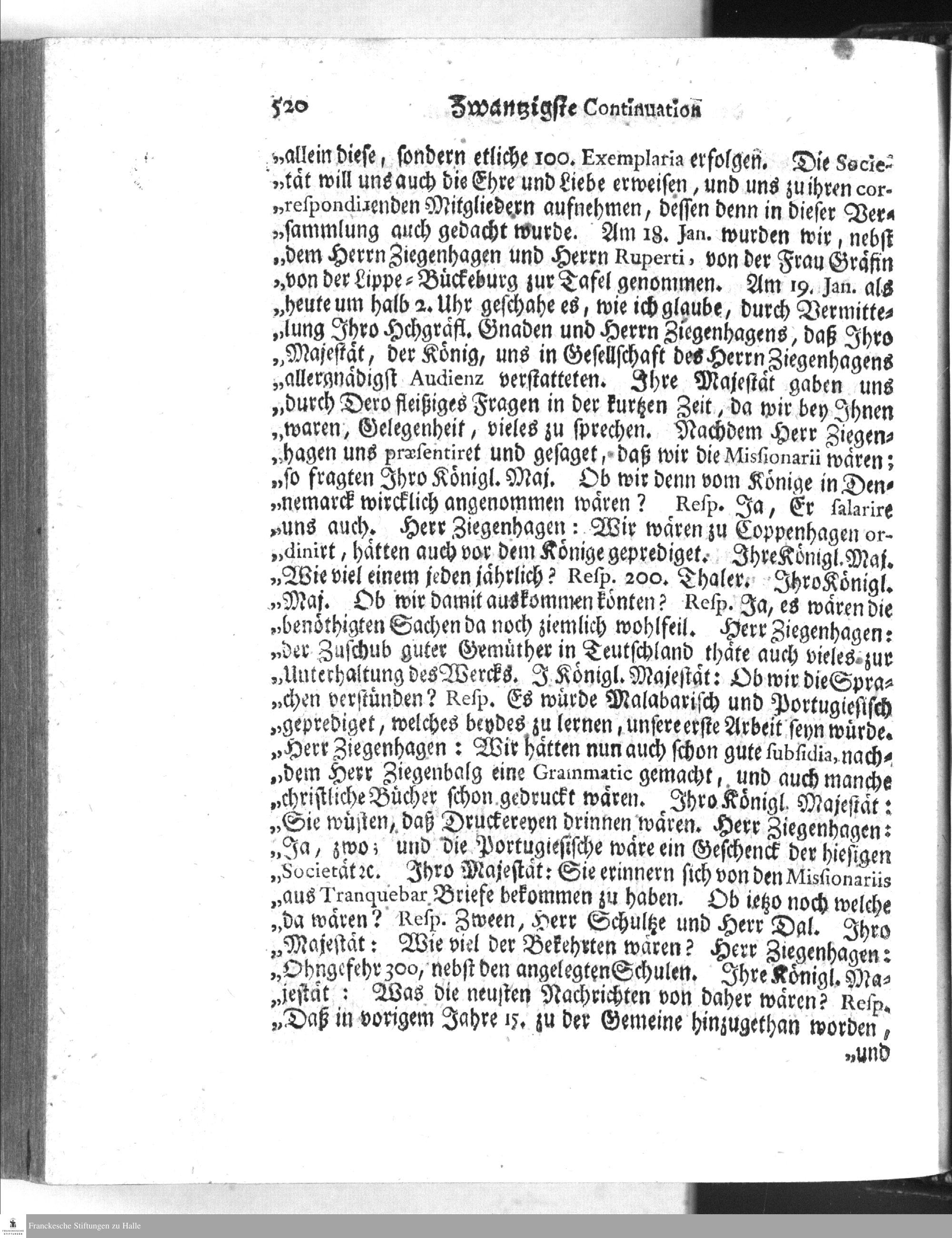 Zwantzigste CONTINUATION des Berichts Derer Koeniglichen Daenischen Missionarien...