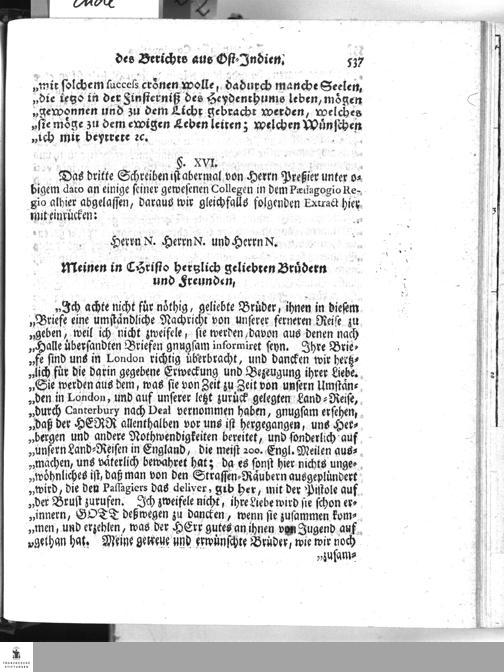 [Schreiben des Herrn Missionarii Pressier an einige seiner gewesenen Collegen im...