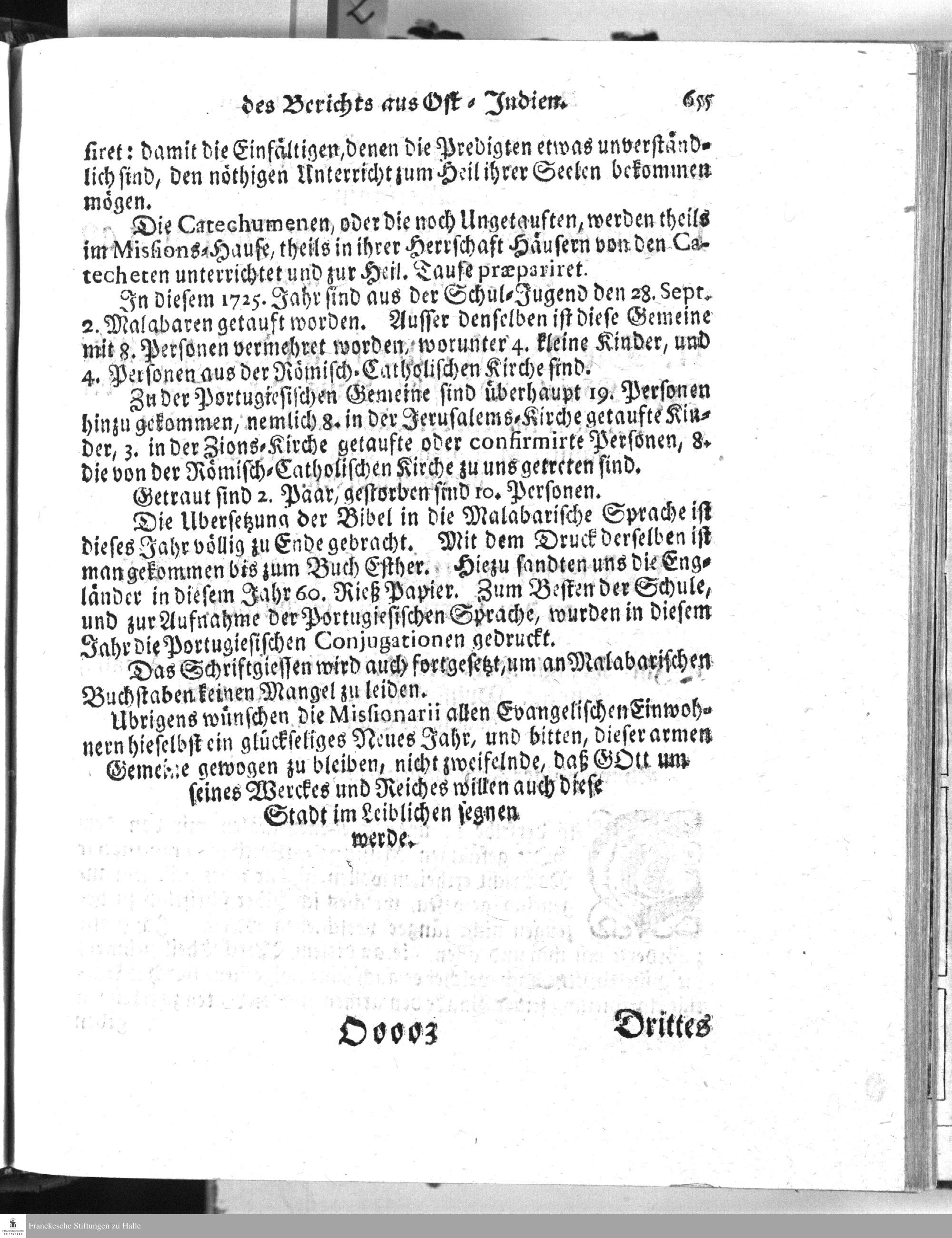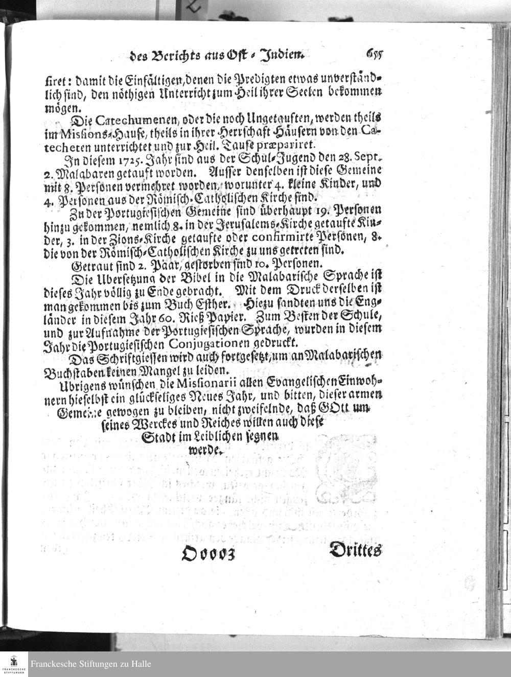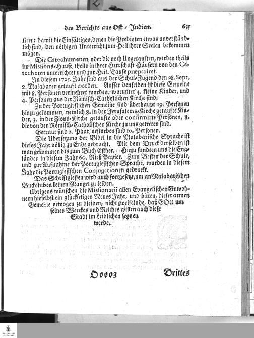 Kurtzgefaßte Nachricht von den aeusserlichen Umstaenden der Koenigl. Daenischen Mission zu Tranquebar, beym Ausgang des Jahrs 1725.
