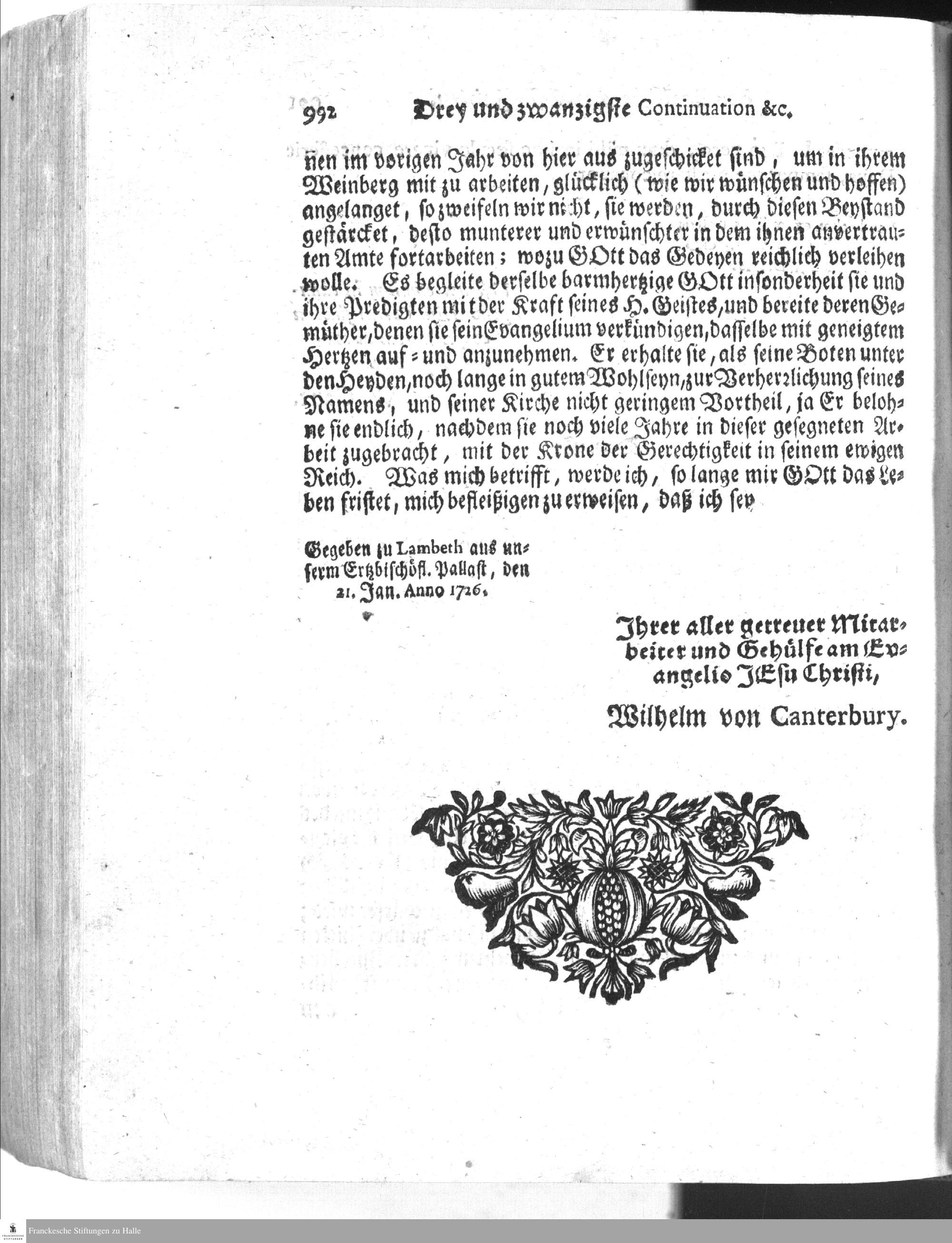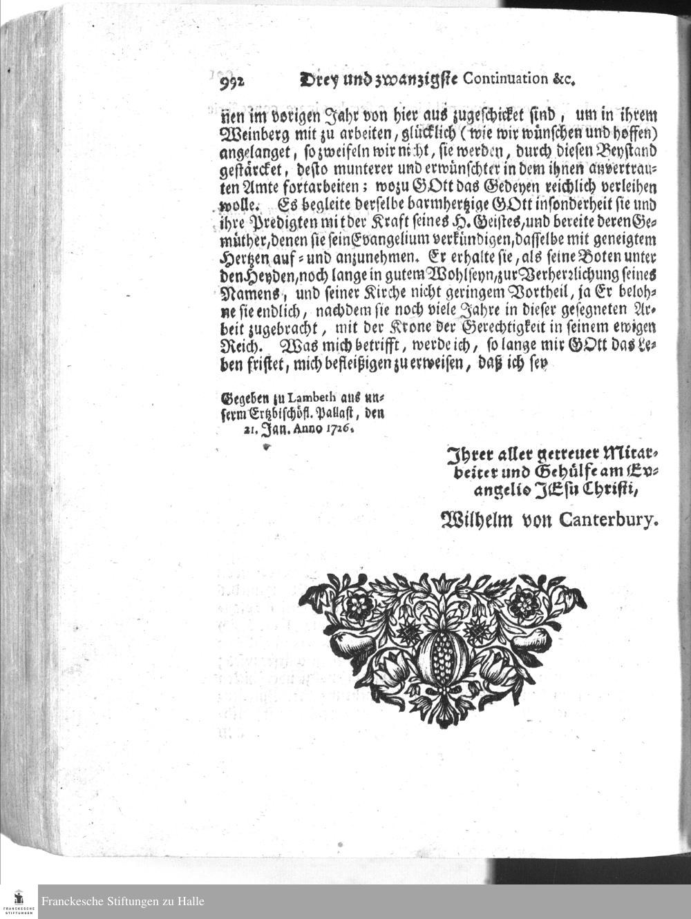 Schreiben des Herrn Ertz-Bischofs von Canterbury an die Herrn Missionarios.