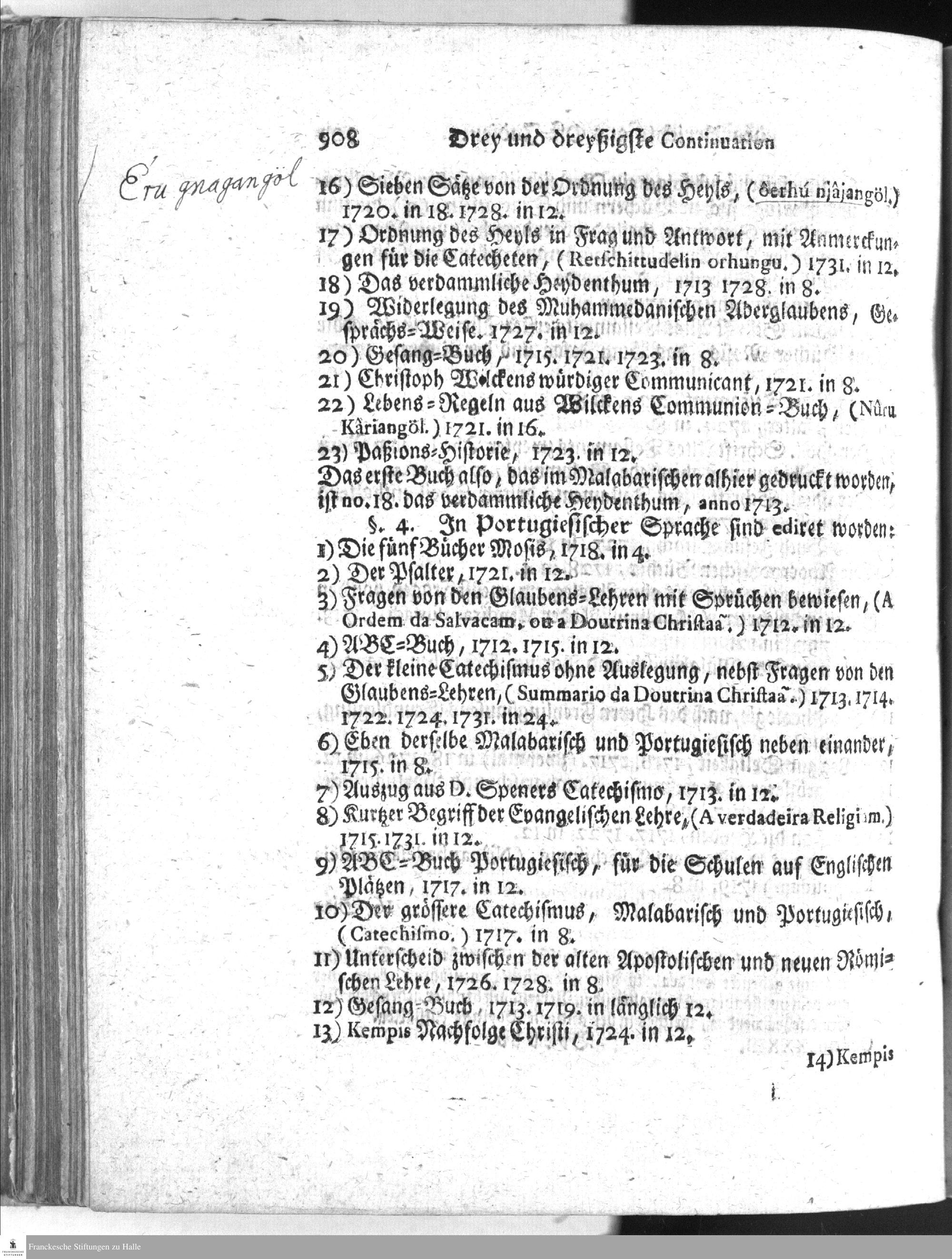 Ausfuehrlicher Bericht Von der gegenwaertigen Verfassung des Evangelischen Mißions-Wercks zu Trankenbar.