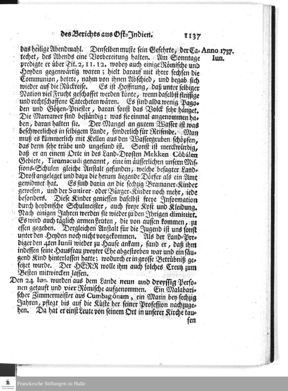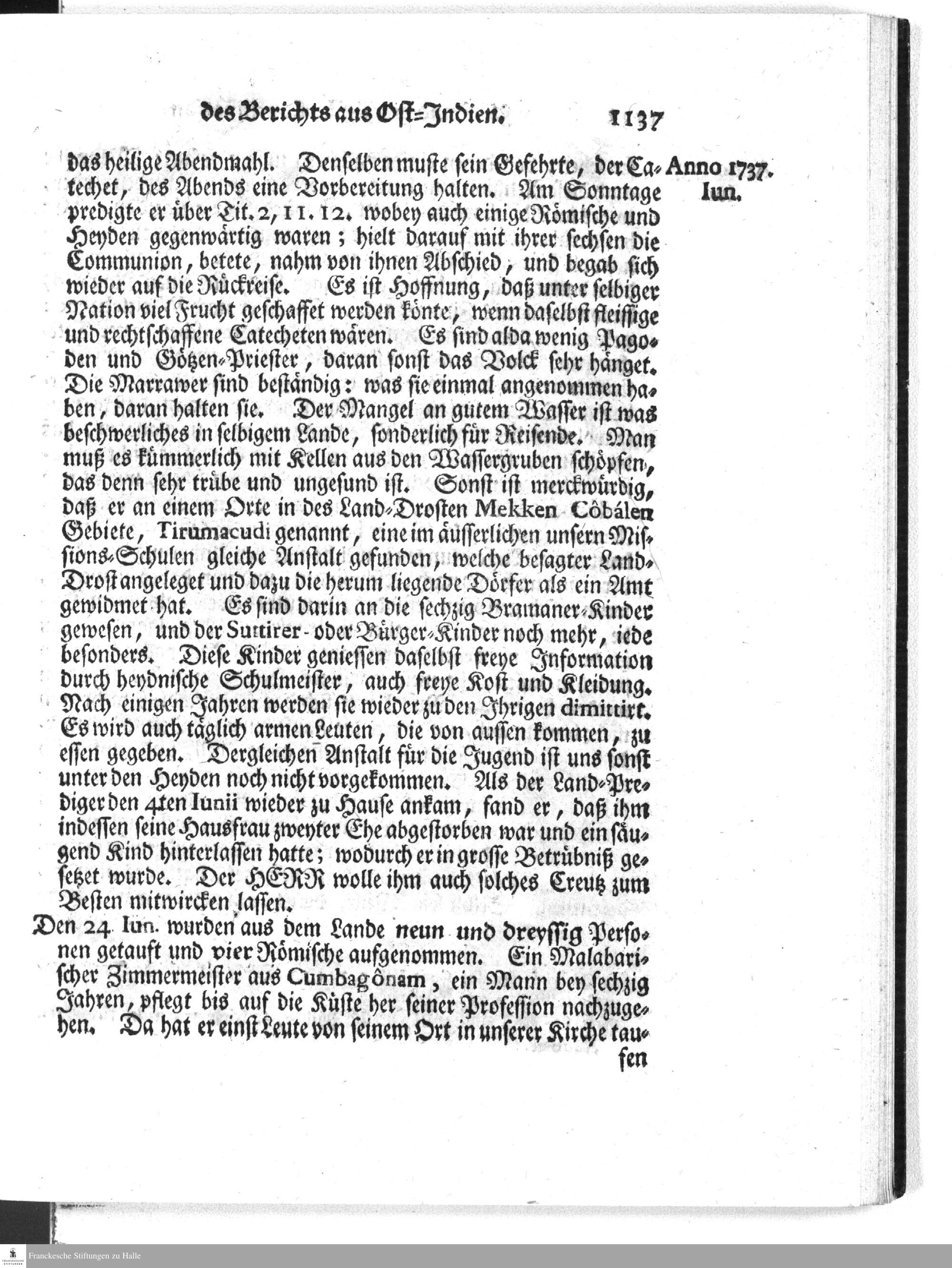 Der Hnn. Missionarien zu Tranquebar Tage-Register von der ersten Haelfte des 1737sten Jahres.
