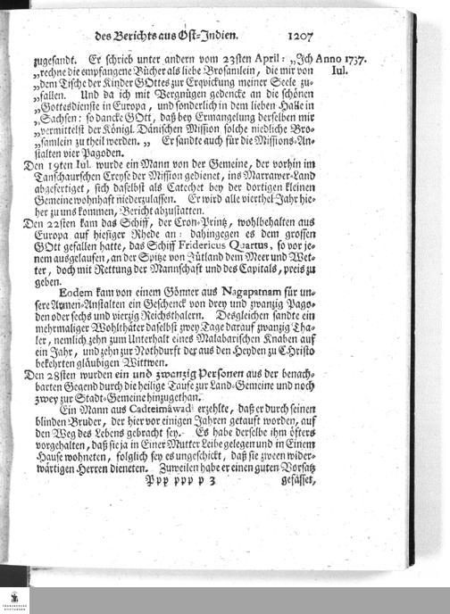Der Herren Missionarien zu Tranquebar Tage-Register von der letzten Haelfte des 1737sten Jahres.