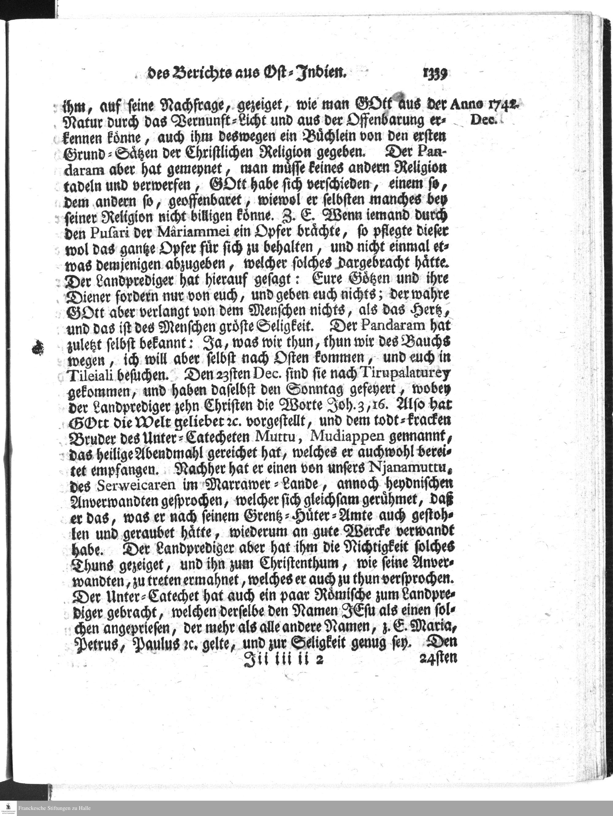 Der Hrrn. Missionarien zu Tranckenbar Diarium von der andern Haelfte des 1742sten...