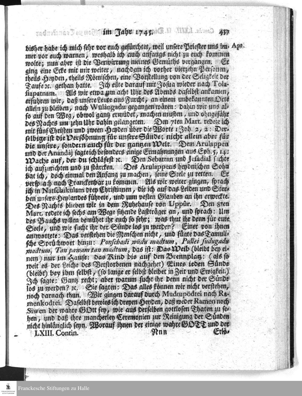 Drey und sechzigste CONTINUATION Des Berichts Der Koenigl. Daenischen Missionarien...