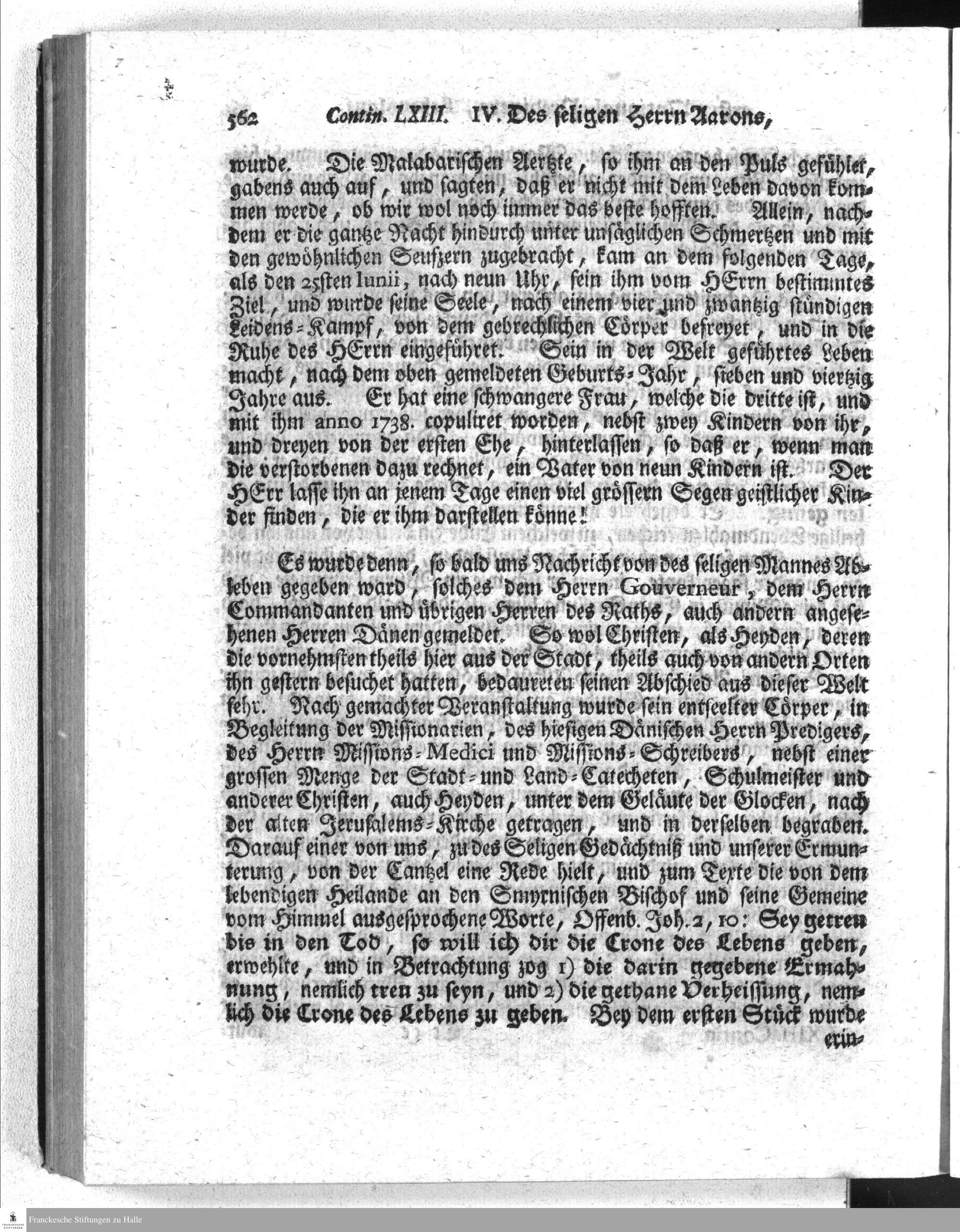 Des seligen Herrn Aarons, ersten National-Predigers unter den Malabaren, Lebensl...