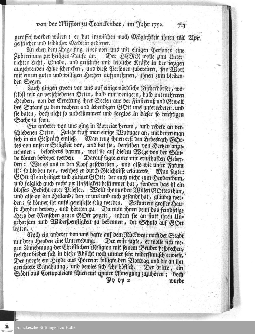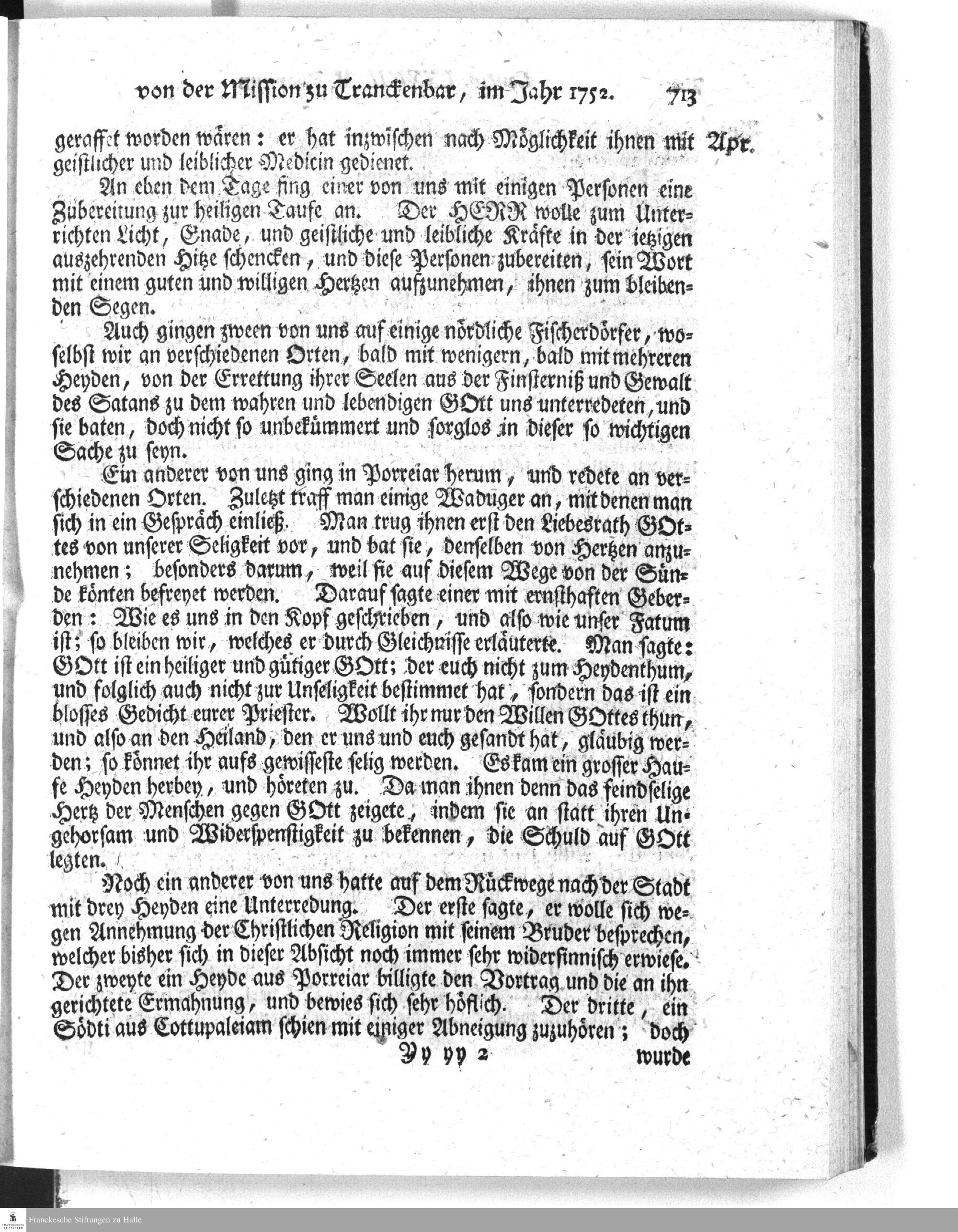 Der Herren Missionarien zu Tranckenbar Diarium von der ersten Haelfte des 1752sten Jahres.