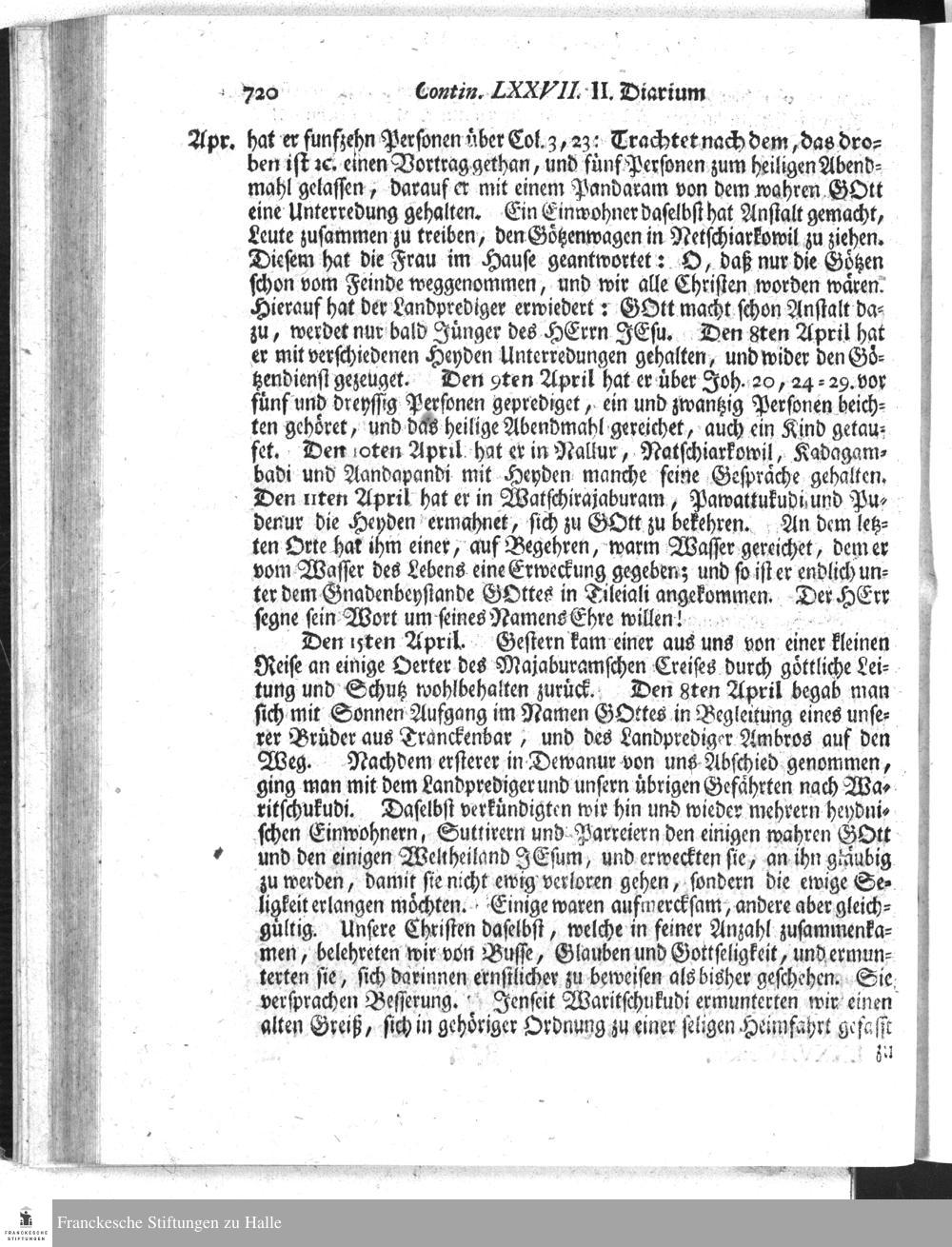 Sieben und siebenzigste Continuation Des Berichts Der Koeniglich-Daenischen Missionarien...