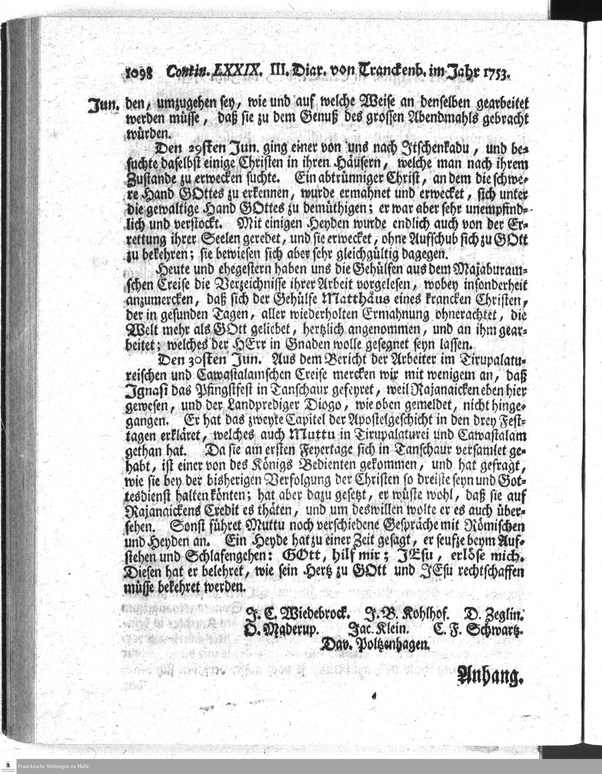 Der Herren Missionarien zu Tranckenbar Diarium von der ersten Haelfte des 1753sten Jahres.