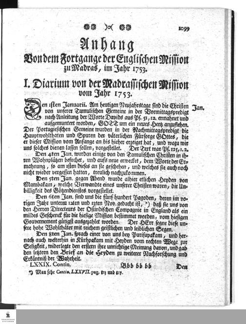 Diarium von der Madrassischen Mission vom Jahr 1753.