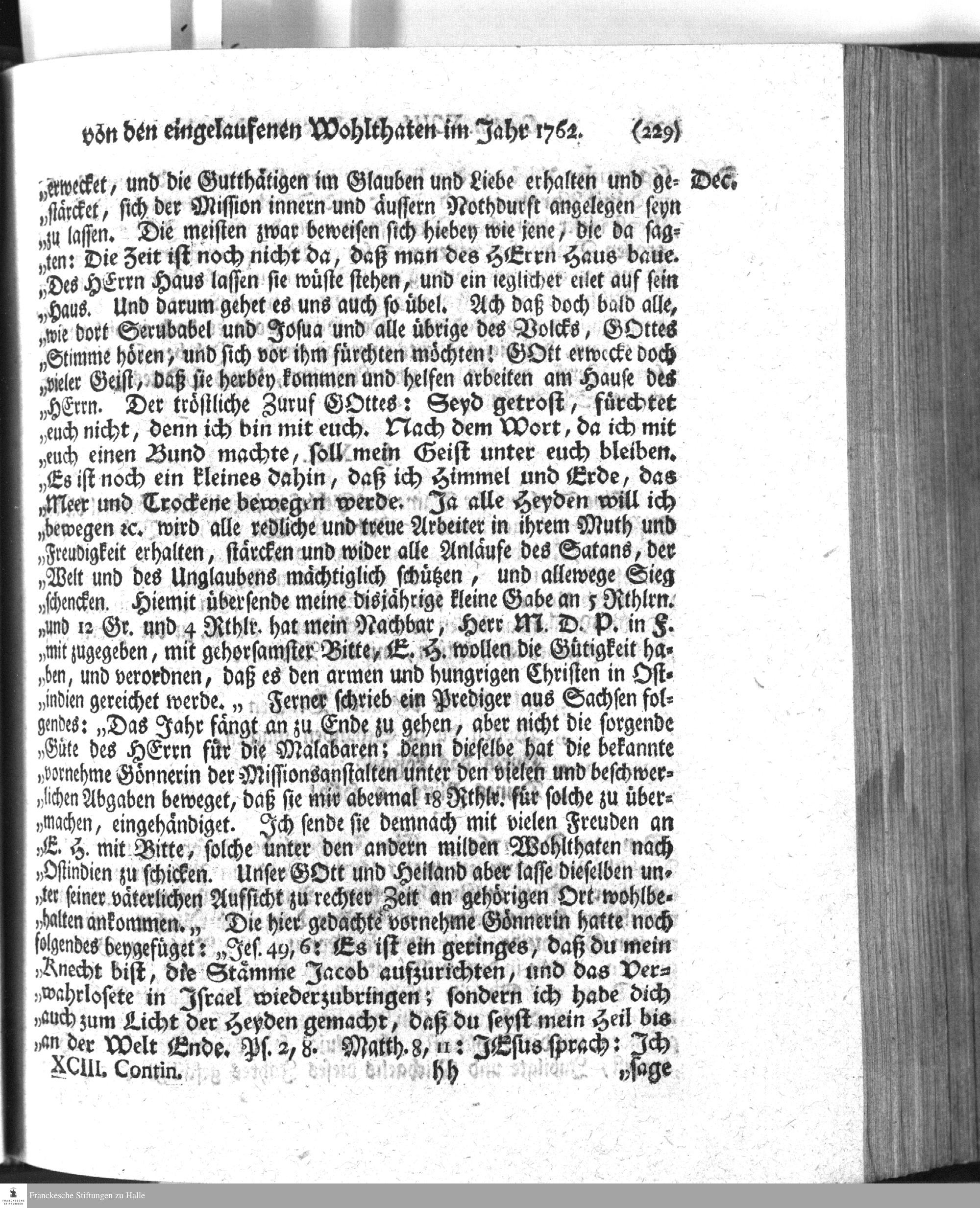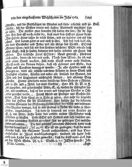 1763: Drey und neunzigste Continuation Des Berichts Der Koeniglich-Daenischen Missionarien in Ost-Indien, Worinnen, nebst der kurtzgefassten Nachricht vom Jahr 1760, und den allerunterthaenigsten Berichten an das Hohe Koenigliche Haus in Daennemarck von besagtem Jahre, Das Tage-Register der Mission zu Tranckenbar von der ersten Haelfte des gedachten 1760sten Jahres, wie auch Zwey Reise-Diaria theils nach Tanschaur, theils nach der Insul Ceylon enthalten sind; Herausgegeben von D. Gotthilf August Francken, Seniore der Theol. Fac. Inspect. im Saal-Creise und Pred. zur L. Fr. HALLE, in Verlegung des Waysenhauses, MDCCLXIII.