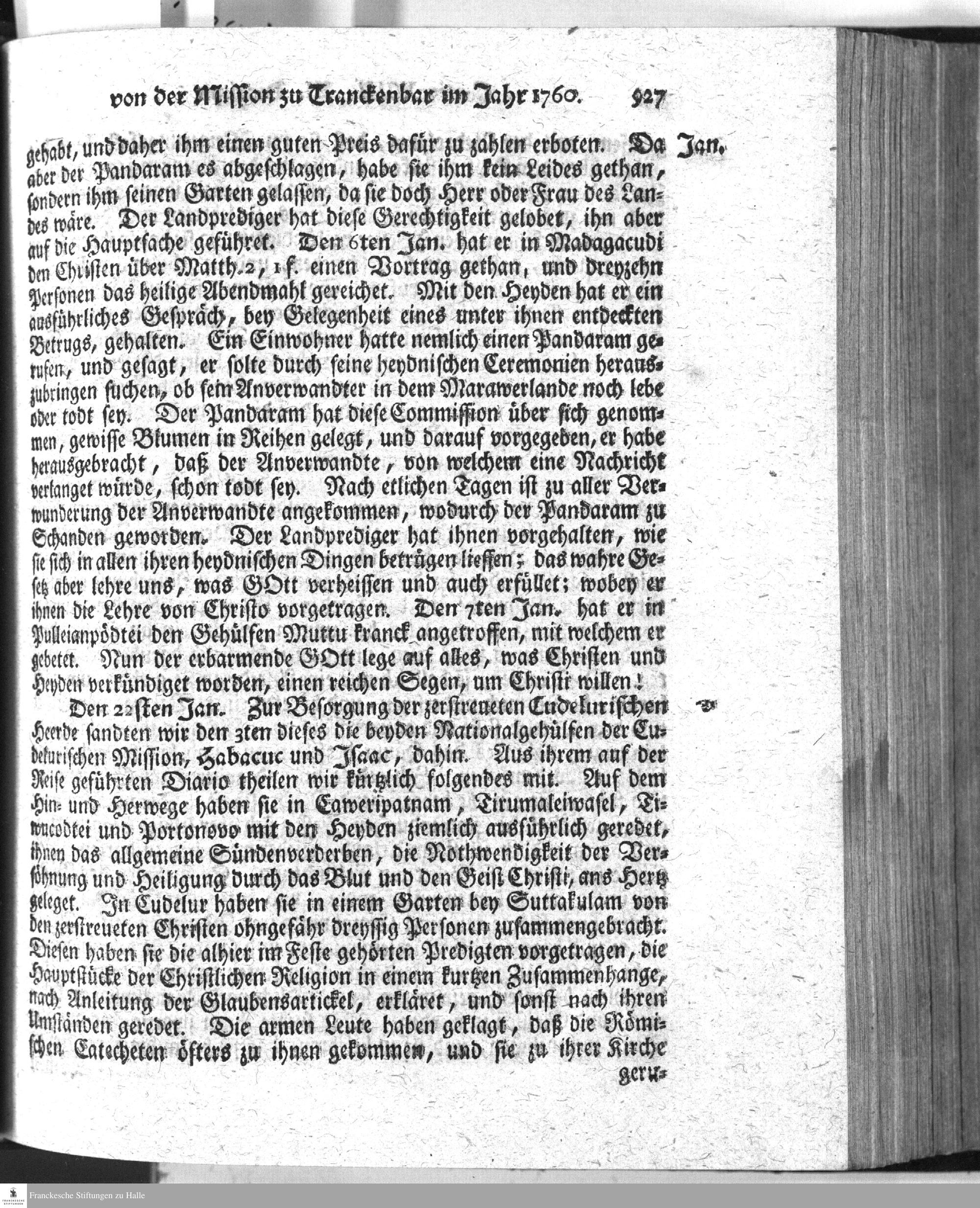 Der Herren Missionarien zu Tranckenbar Diarium von der ersten Haelfte des 1760sten...