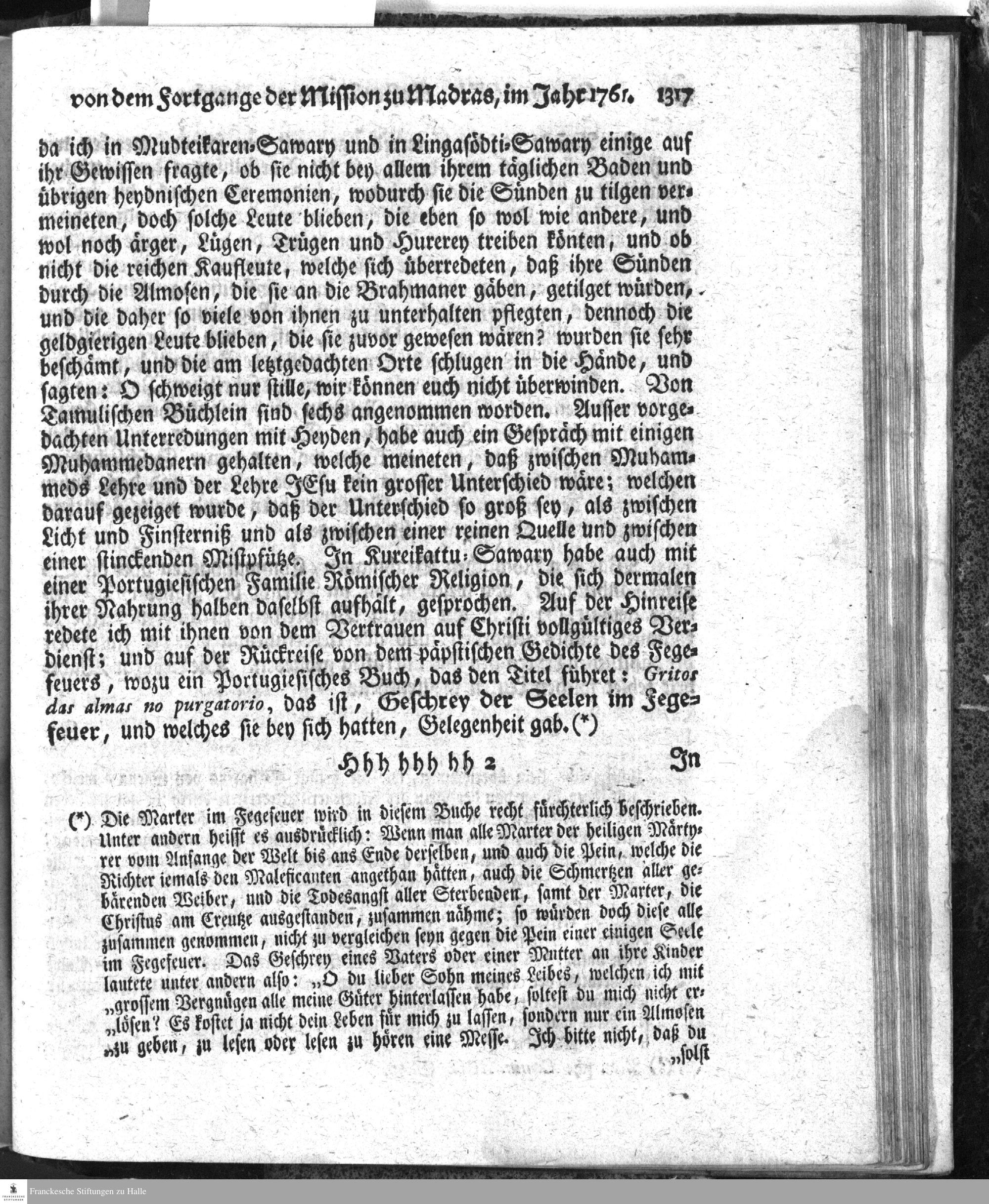 Der beyden Herren Missionarien zu Madras Bericht von dem Zustande und Fortgange der Mission daselbst, im Jahr 1761.