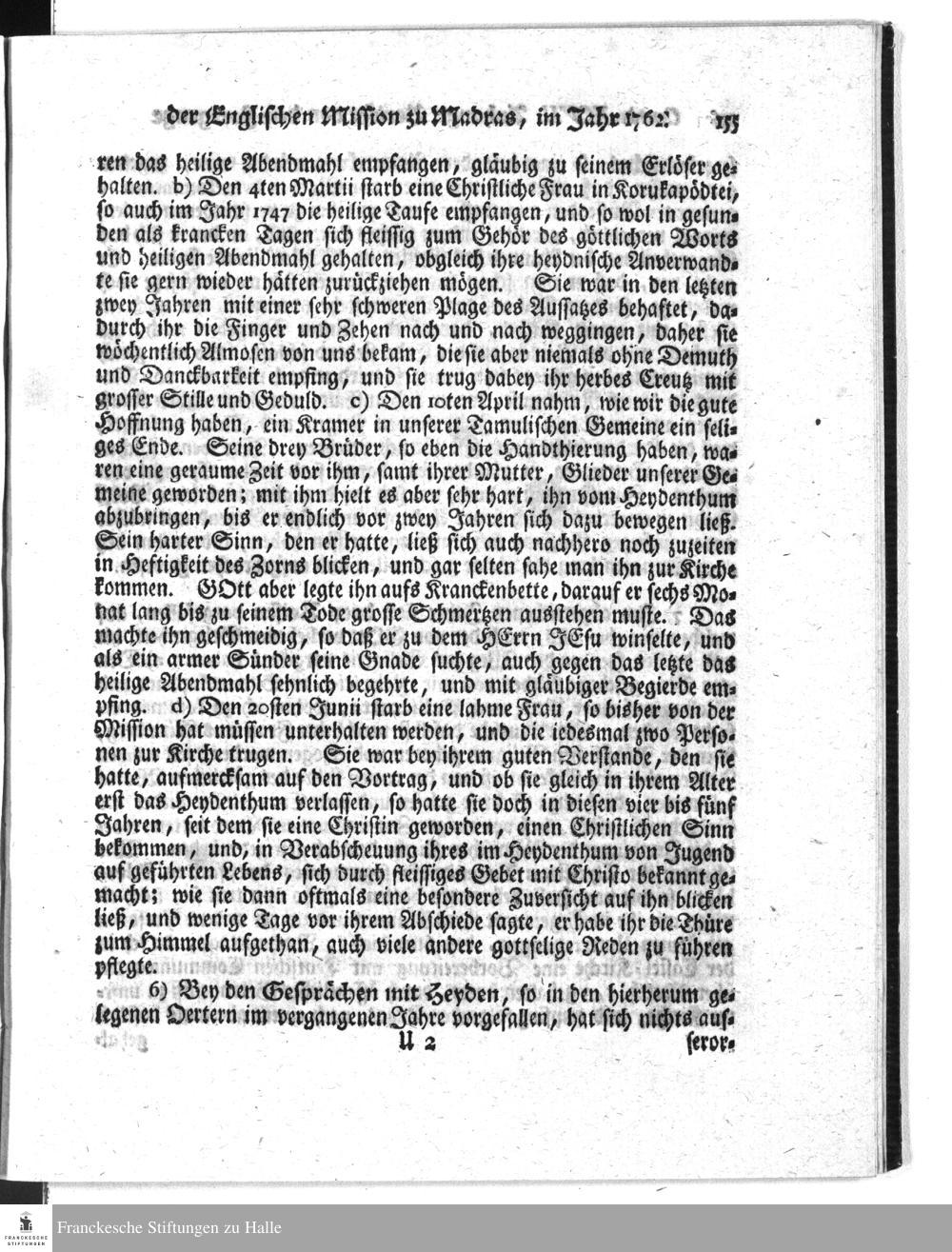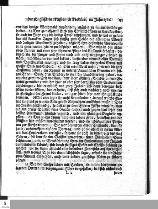 Kurtzer Bericht von dem Fortgange der Evangelischen Mission zu Woeperi bey Madras im Jahr 1762.