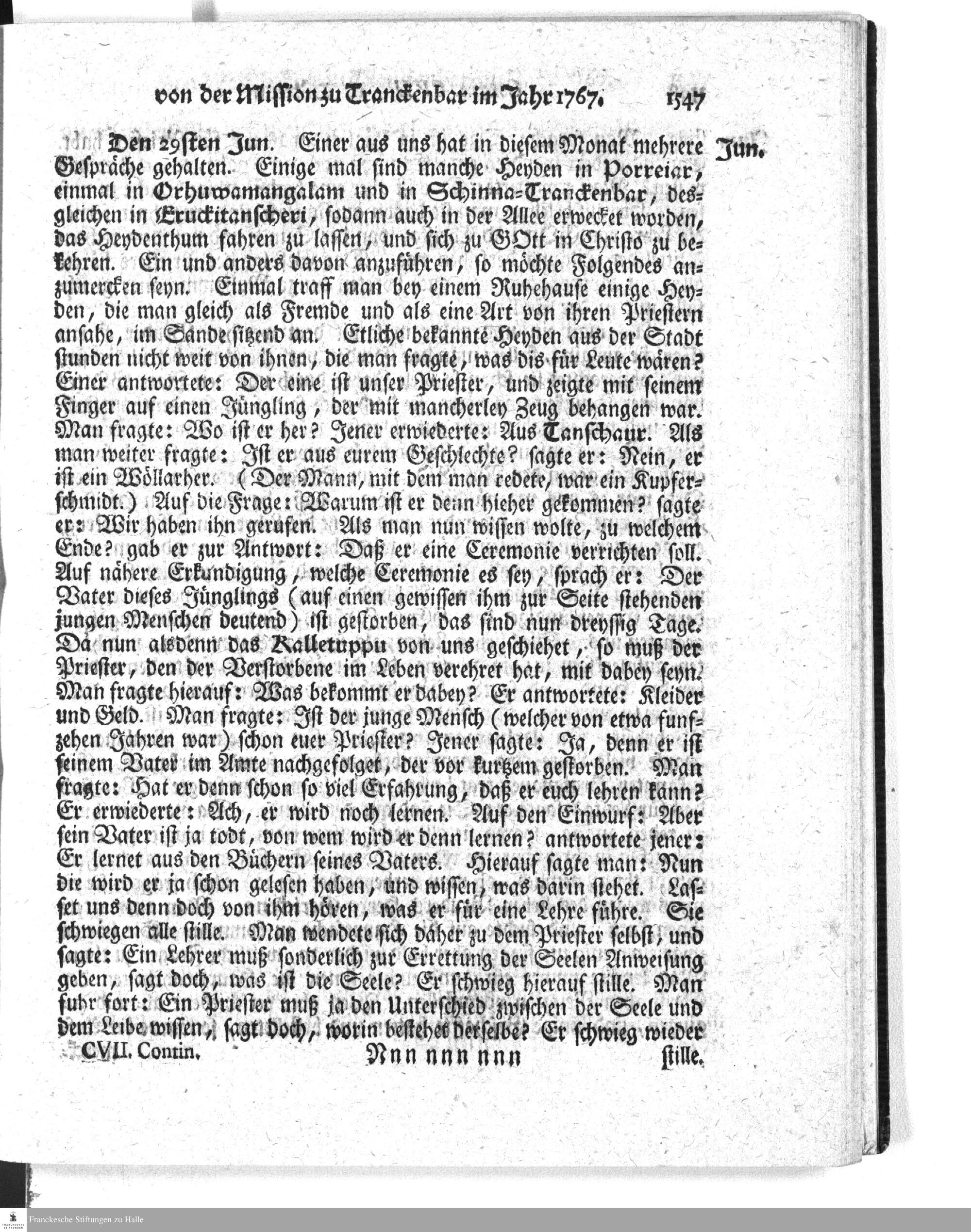 Der Herren Missionarien zu Tranckenbar Diarium von der ersten Haelfte des 1767sten...