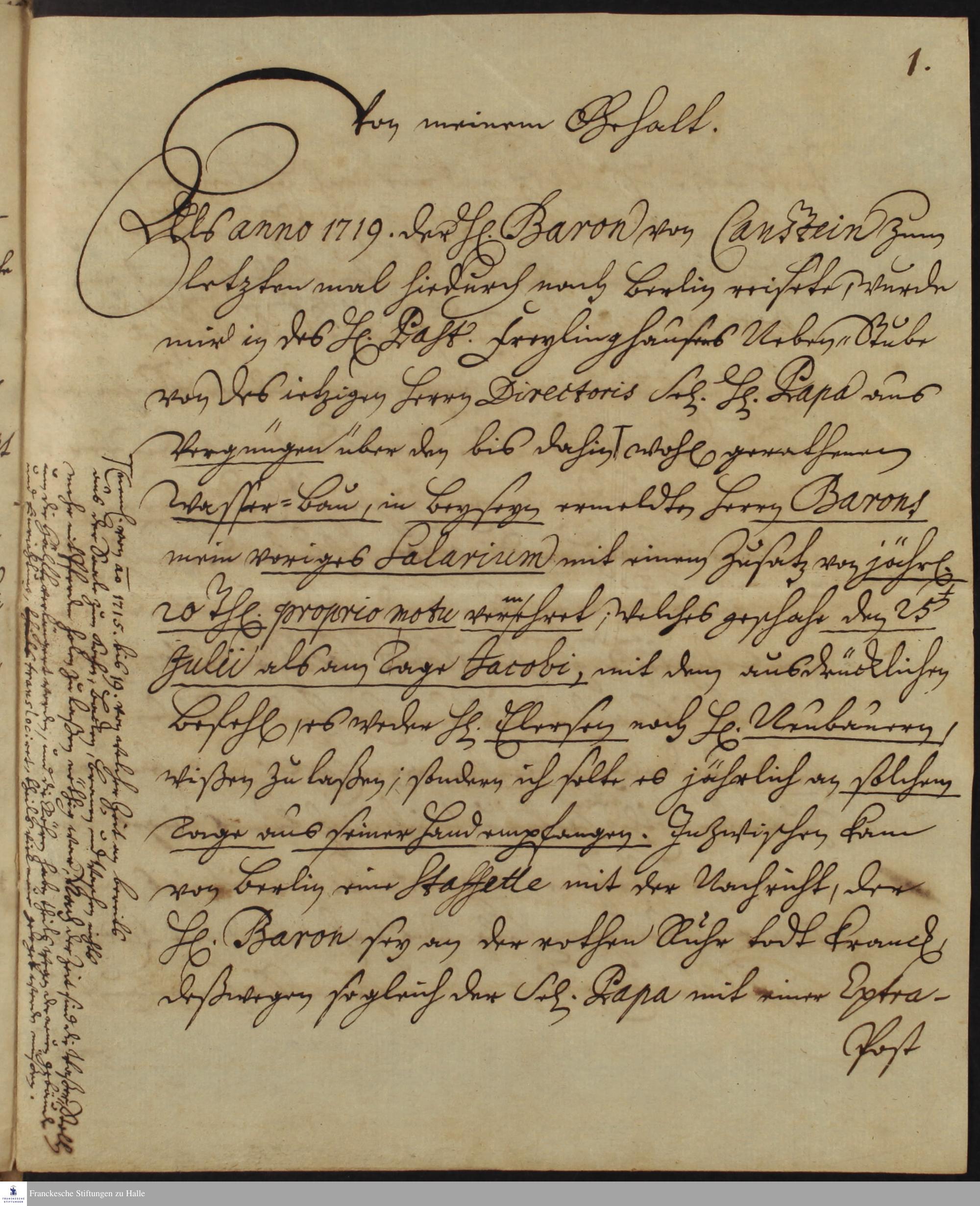 Brief und Erklärungen zum Wasserbau von Gottfried Rost an Gotthilf August Francke.