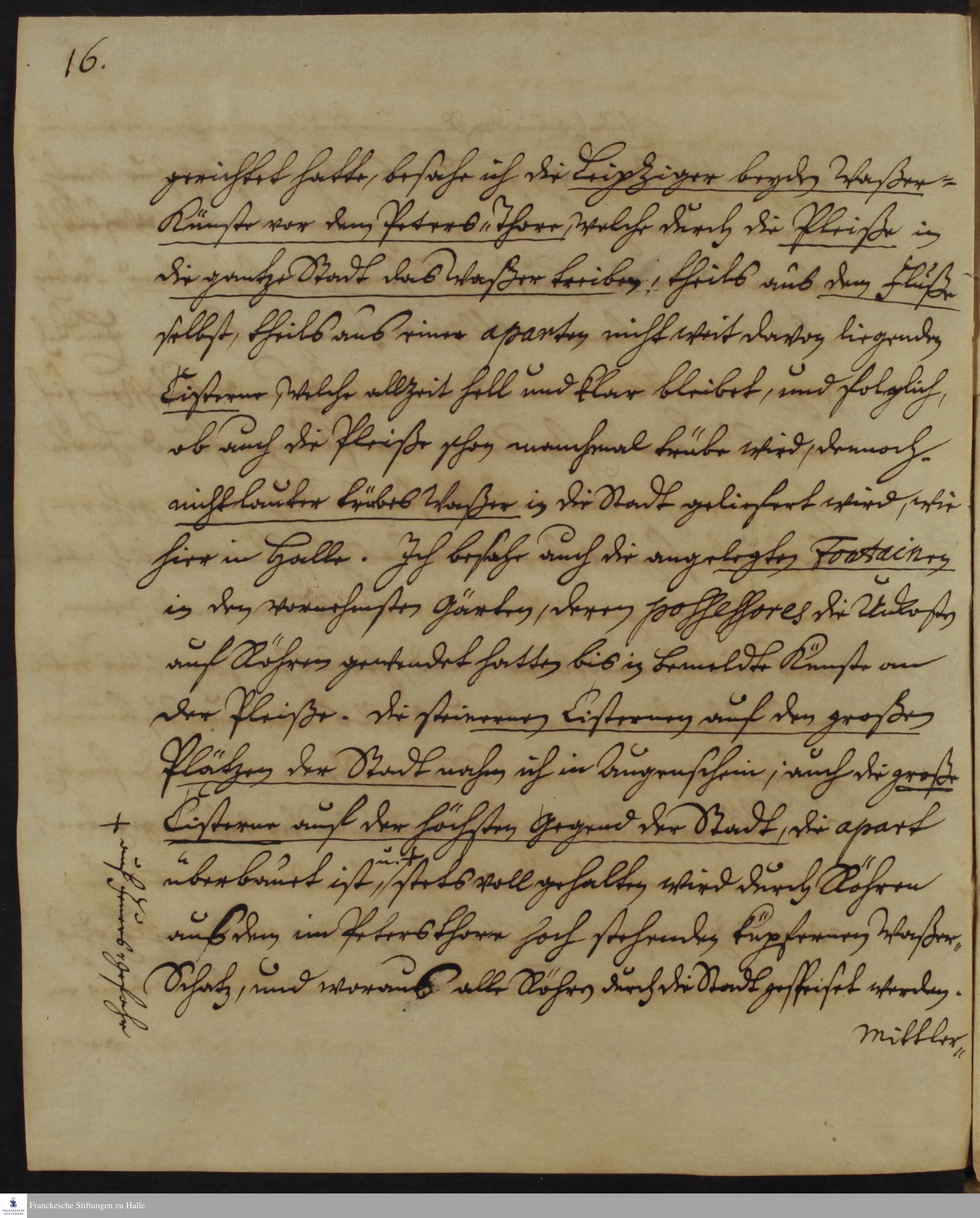 Brief und Erklärungen zum Wasserbau von Gottfried Rost an Gotthilf August Francke.