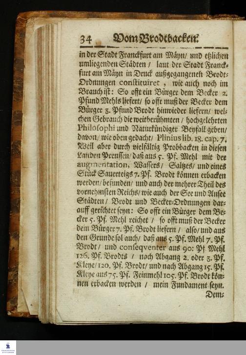 Bericht Vom Brodt-Backen/ Fundiret und gerichtet auff die Substantz/ Natur/ Eigenschafft und Gütigkeit des Fruchtwachs/ und dann nach Art treulichen/ fleißigen vollnständigen mahlens/ sichtens einteigens/ säurens und backens : Dem gemeinem Vaterland/ gemeiner Wolfart/ und lieben Armuth zu sonderm Nutz und Frommen in Druck gegeben: Allen Proviantmeistern/ Verwaltern/ Haußhaltern und Haußvätern sehr nützlich und vorträglich zu wissen / Gestellet durch Sebaldum Müllern/ Bürgern zu Königsberg in Preussen