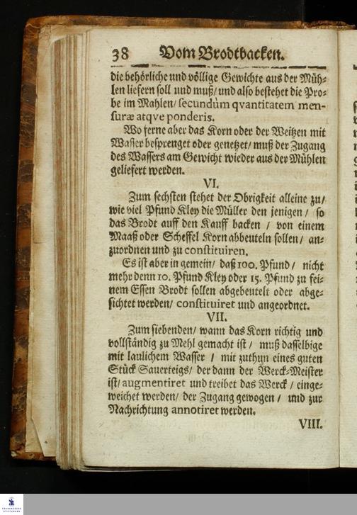 Bericht Vom Brodt-Backen/ Fundiret und gerichtet auff die Substantz/ Natur/ Eigenschafft und Gütigkeit des Fruchtwachs/ und dann nach Art treulichen/ fleißigen vollnständigen mahlens/ sichtens einteigens/ säurens und backens : Dem gemeinem Vaterland/ gemeiner Wolfart/ und lieben Armuth zu sonderm Nutz und Frommen in Druck gegeben: Allen Proviantmeistern/ Verwaltern/ Haußhaltern und Haußvätern sehr nützlich und vorträglich zu wissen / Gestellet durch Sebaldum Müllern/ Bürgern zu Königsberg in Preussen