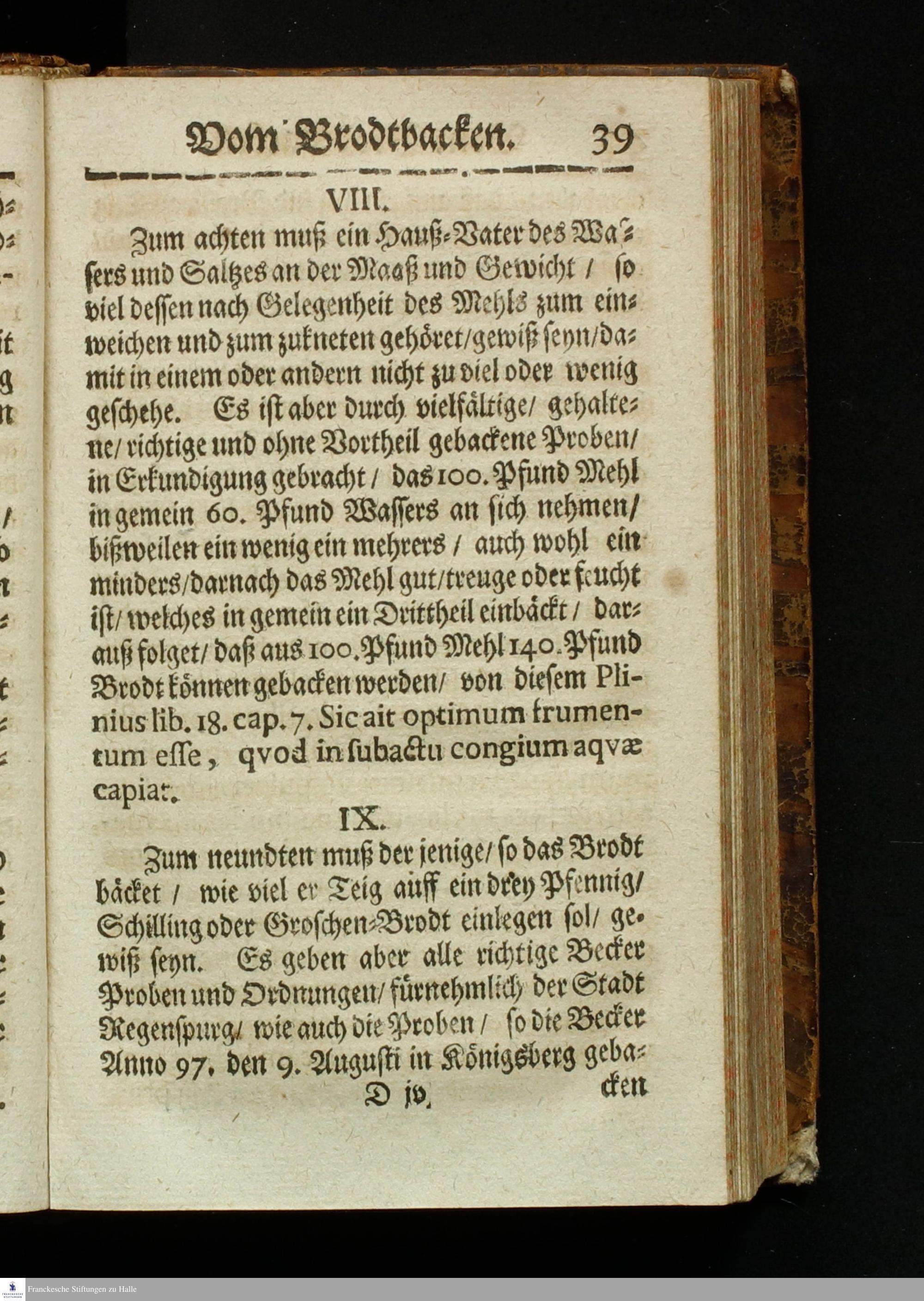 Bericht Vom Brodt-Backen/ Fundiret und gerichtet auff die Substantz/ Natur/ Eigenschafft und Gütigkeit des Fruchtwachs/ und dann nach Art treulichen/ fleißigen vollnständigen mahlens/ sichtens einteigens/ säurens und backens : Dem gemeinem Vaterland/ gemeiner Wolfart/ und lieben Armuth zu sonderm Nutz und Frommen in Druck gegeben: Allen Proviantmeistern/ Verwaltern/ Haußhaltern und Haußvätern sehr nützlich und vorträglich zu wissen / Gestellet durch Sebaldum Müllern/ Bürgern zu Königsberg in Preussen