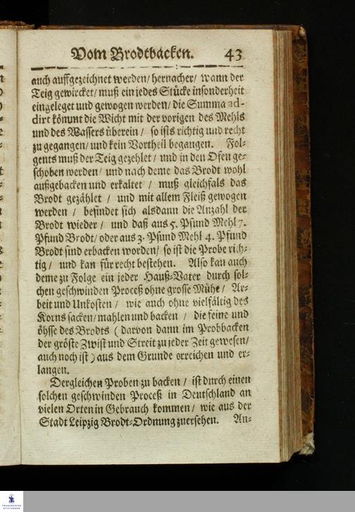 Bericht Vom Brodt-Backen/ Fundiret und gerichtet auff die Substantz/ Natur/ Eigenschafft und Gütigkeit des Fruchtwachs/ und dann nach Art treulichen/ fleißigen vollnständigen mahlens/ sichtens einteigens/ säurens und backens : Dem gemeinem Vaterland/ gemeiner Wolfart/ und lieben Armuth zu sonderm Nutz und Frommen in Druck gegeben: Allen Proviantmeistern/ Verwaltern/ Haußhaltern und Haußvätern sehr nützlich und vorträglich zu wissen / Gestellet durch Sebaldum Müllern/ Bürgern zu Königsberg in Preussen