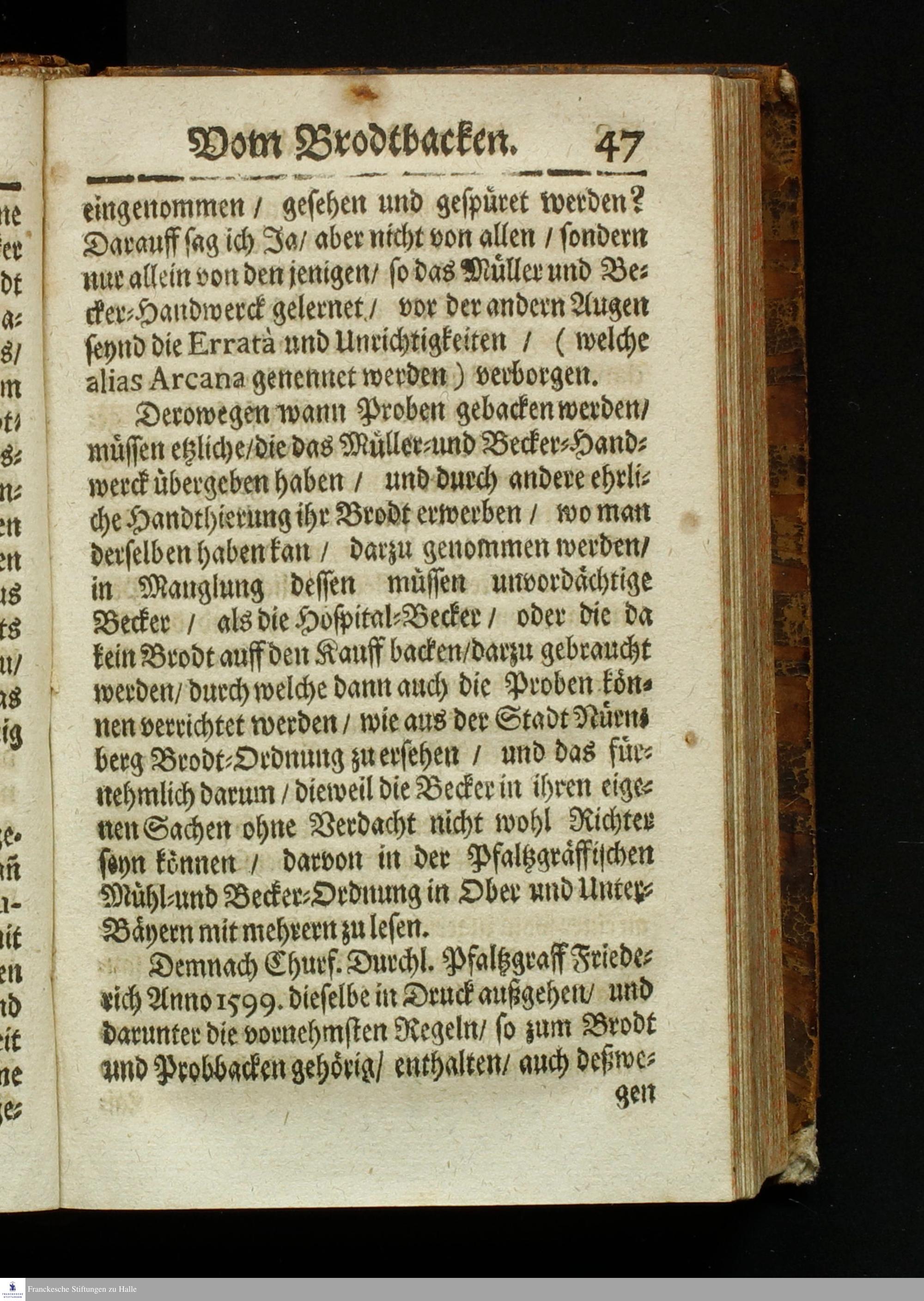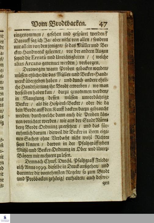 Bericht Vom Brodt-Backen/ Fundiret und gerichtet auff die Substantz/ Natur/ Eigenschafft und Gütigkeit des Fruchtwachs/ und dann nach Art treulichen/ fleißigen vollnständigen mahlens/ sichtens einteigens/ säurens und backens : Dem gemeinem Vaterland/ gemeiner Wolfart/ und lieben Armuth zu sonderm Nutz und Frommen in Druck gegeben: Allen Proviantmeistern/ Verwaltern/ Haußhaltern und Haußvätern sehr nützlich und vorträglich zu wissen / Gestellet durch Sebaldum Müllern/ Bürgern zu Königsberg in Preussen