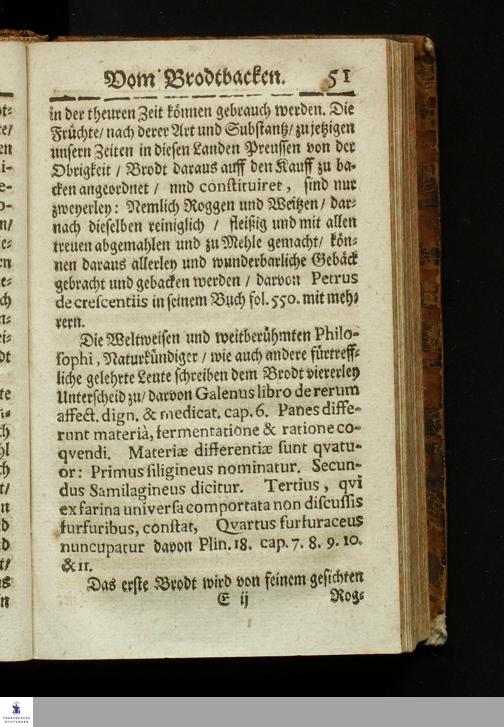 Bericht Vom Brodt-Backen/ Fundiret und gerichtet auff die Substantz/ Natur/ Eigenschafft und Gütigkeit des Fruchtwachs/ und dann nach Art treulichen/ fleißigen vollnständigen mahlens/ sichtens einteigens/ säurens und backens : Dem gemeinem Vaterland/ gemeiner Wolfart/ und lieben Armuth zu sonderm Nutz und Frommen in Druck gegeben: Allen Proviantmeistern/ Verwaltern/ Haußhaltern und Haußvätern sehr nützlich und vorträglich zu wissen / Gestellet durch Sebaldum Müllern/ Bürgern zu Königsberg in Preussen