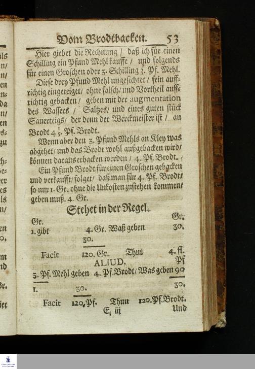 Bericht Vom Brodt-Backen/ Fundiret und gerichtet auff die Substantz/ Natur/ Eigenschafft und Gütigkeit des Fruchtwachs/ und dann nach Art treulichen/ fleißigen vollnständigen mahlens/ sichtens einteigens/ säurens und backens : Dem gemeinem Vaterland/ gemeiner Wolfart/ und lieben Armuth zu sonderm Nutz und Frommen in Druck gegeben: Allen Proviantmeistern/ Verwaltern/ Haußhaltern und Haußvätern sehr nützlich und vorträglich zu wissen / Gestellet durch Sebaldum Müllern/ Bürgern zu Königsberg in Preussen