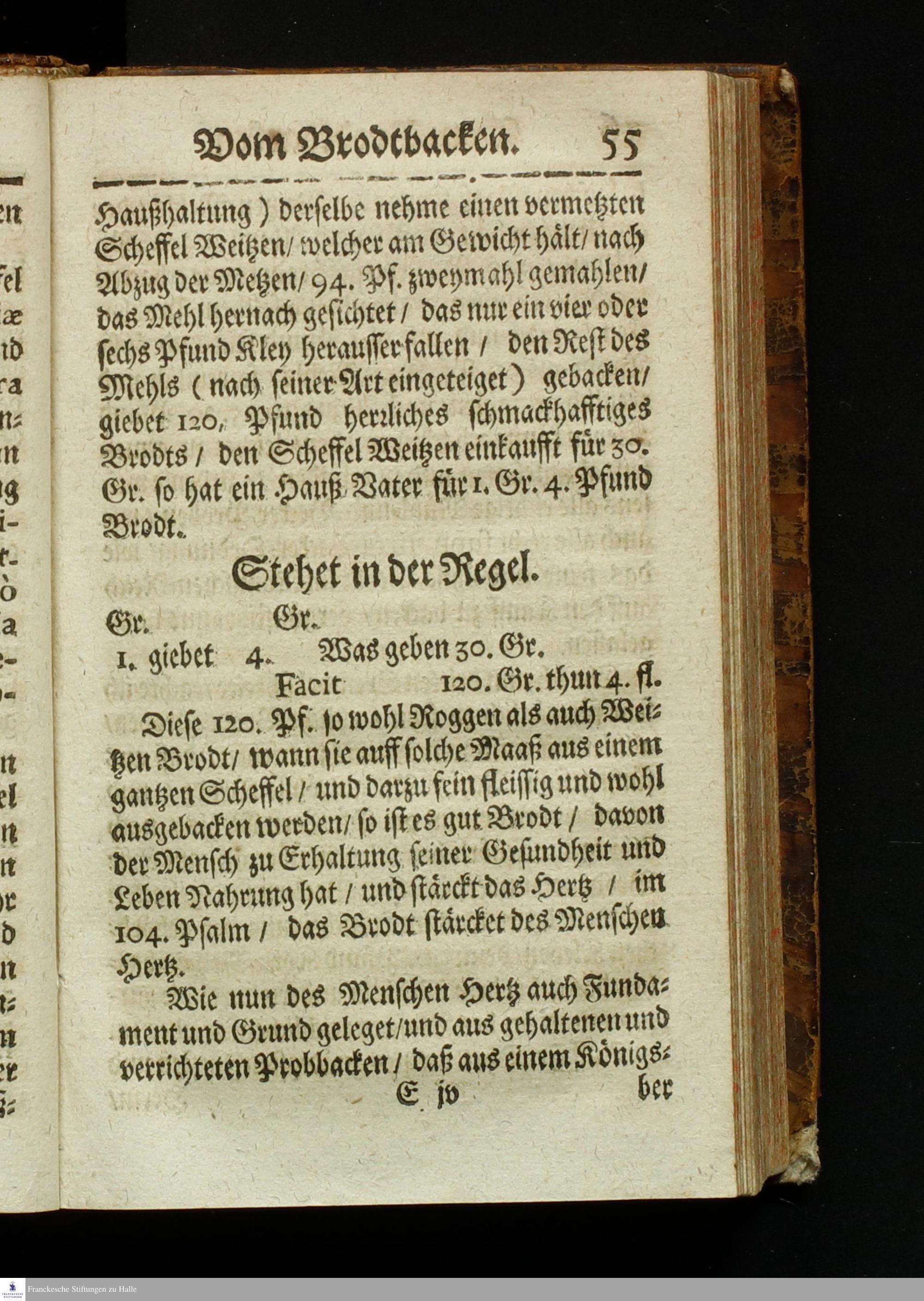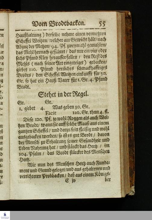 Bericht Vom Brodt-Backen/ Fundiret und gerichtet auff die Substantz/ Natur/ Eigenschafft und Gütigkeit des Fruchtwachs/ und dann nach Art treulichen/ fleißigen vollnständigen mahlens/ sichtens einteigens/ säurens und backens : Dem gemeinem Vaterland/ gemeiner Wolfart/ und lieben Armuth zu sonderm Nutz und Frommen in Druck gegeben: Allen Proviantmeistern/ Verwaltern/ Haußhaltern und Haußvätern sehr nützlich und vorträglich zu wissen / Gestellet durch Sebaldum Müllern/ Bürgern zu Königsberg in Preussen