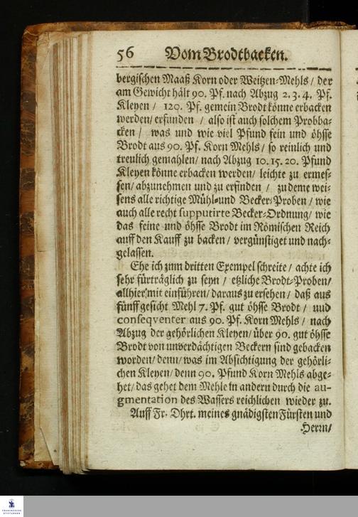 Bericht Vom Brodt-Backen/ Fundiret und gerichtet auff die Substantz/ Natur/ Eigenschafft und Gütigkeit des Fruchtwachs/ und dann nach Art treulichen/ fleißigen vollnständigen mahlens/ sichtens einteigens/ säurens und backens : Dem gemeinem Vaterland/ gemeiner Wolfart/ und lieben Armuth zu sonderm Nutz und Frommen in Druck gegeben: Allen Proviantmeistern/ Verwaltern/ Haußhaltern und Haußvätern sehr nützlich und vorträglich zu wissen / Gestellet durch Sebaldum Müllern/ Bürgern zu Königsberg in Preussen