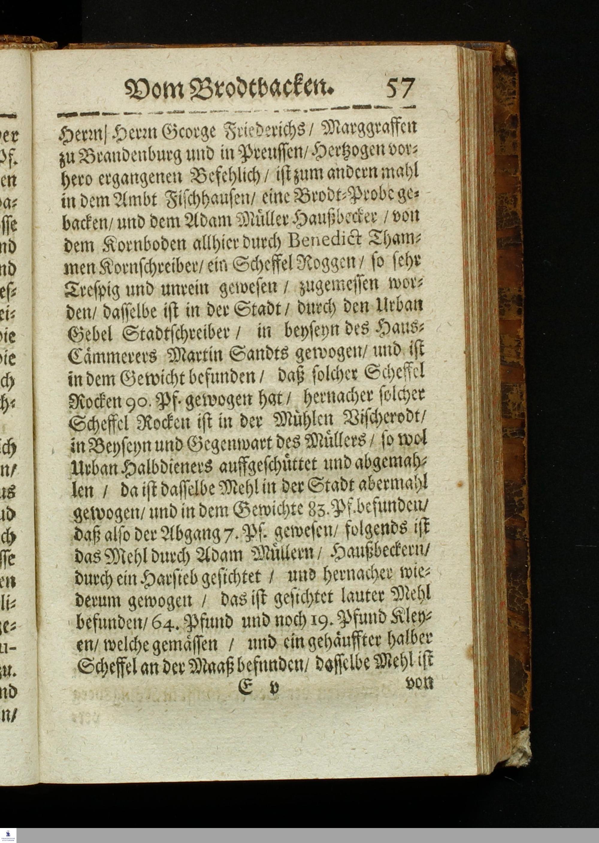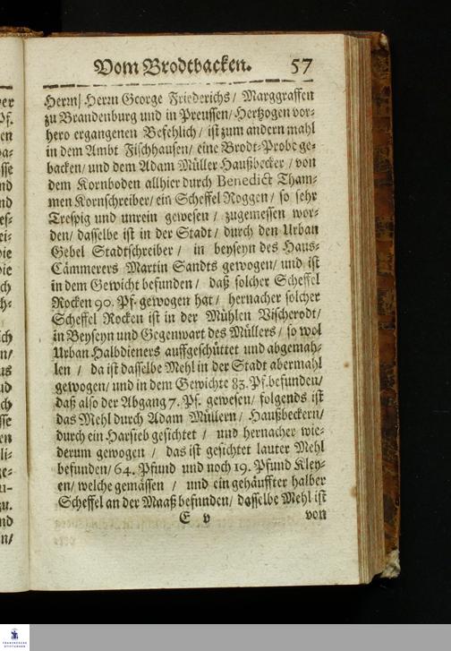 Bericht Vom Brodt-Backen/ Fundiret und gerichtet auff die Substantz/ Natur/ Eigenschafft und Gütigkeit des Fruchtwachs/ und dann nach Art treulichen/ fleißigen vollnständigen mahlens/ sichtens einteigens/ säurens und backens : Dem gemeinem Vaterland/ gemeiner Wolfart/ und lieben Armuth zu sonderm Nutz und Frommen in Druck gegeben: Allen Proviantmeistern/ Verwaltern/ Haußhaltern und Haußvätern sehr nützlich und vorträglich zu wissen / Gestellet durch Sebaldum Müllern/ Bürgern zu Königsberg in Preussen
