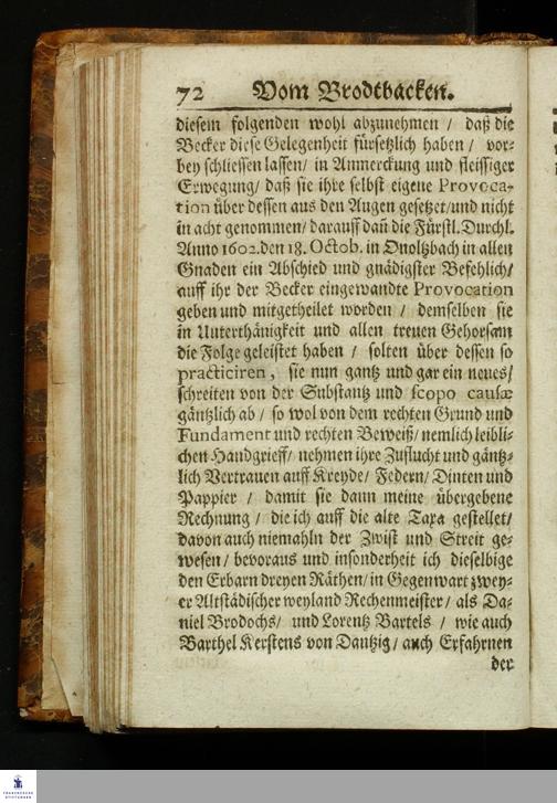 Bericht Vom Brodt-Backen/ Fundiret und gerichtet auff die Substantz/ Natur/ Eigenschafft und Gütigkeit des Fruchtwachs/ und dann nach Art treulichen/ fleißigen vollnständigen mahlens/ sichtens einteigens/ säurens und backens : Dem gemeinem Vaterland/ gemeiner Wolfart/ und lieben Armuth zu sonderm Nutz und Frommen in Druck gegeben: Allen Proviantmeistern/ Verwaltern/ Haußhaltern und Haußvätern sehr nützlich und vorträglich zu wissen / Gestellet durch Sebaldum Müllern/ Bürgern zu Königsberg in Preussen