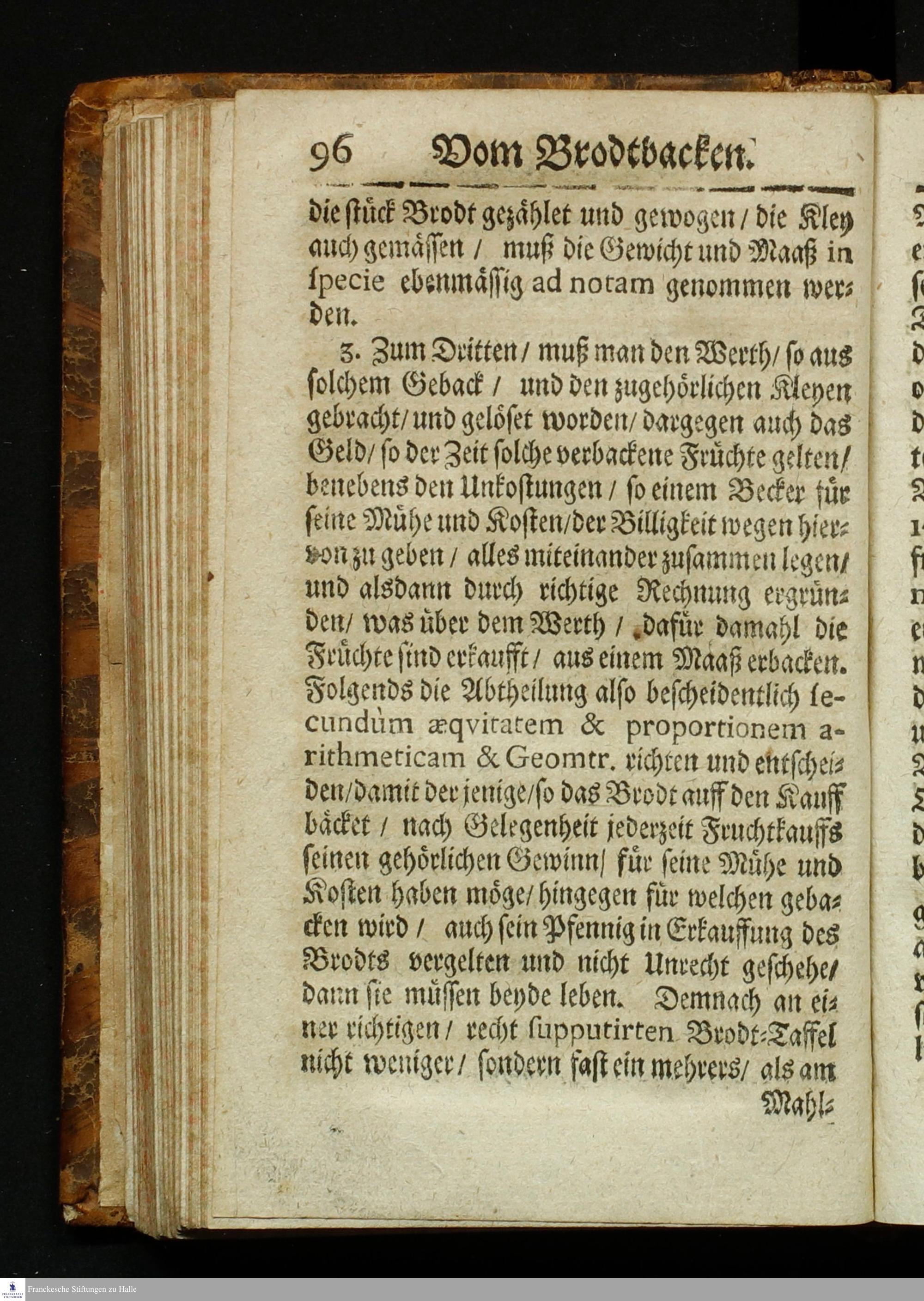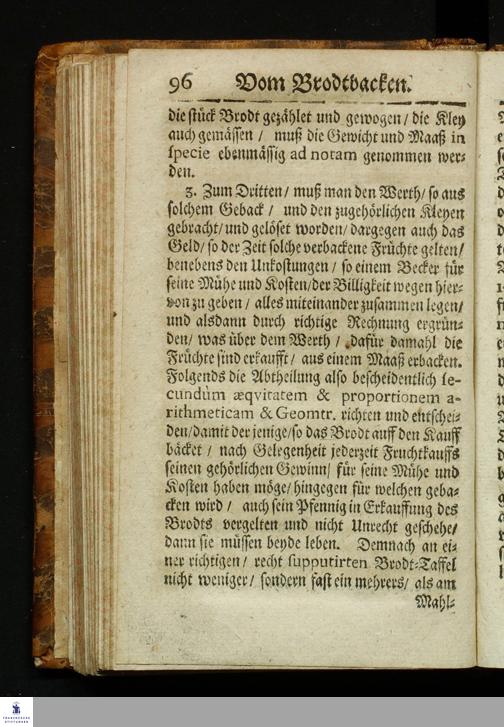 Bericht Vom Brodt-Backen/ Fundiret und gerichtet auff die Substantz/ Natur/ Eigenschafft und Gütigkeit des Fruchtwachs/ und dann nach Art treulichen/ fleißigen vollnständigen mahlens/ sichtens einteigens/ säurens und backens : Dem gemeinem Vaterland/ gemeiner Wolfart/ und lieben Armuth zu sonderm Nutz und Frommen in Druck gegeben: Allen Proviantmeistern/ Verwaltern/ Haußhaltern und Haußvätern sehr nützlich und vorträglich zu wissen / Gestellet durch Sebaldum Müllern/ Bürgern zu Königsberg in Preussen