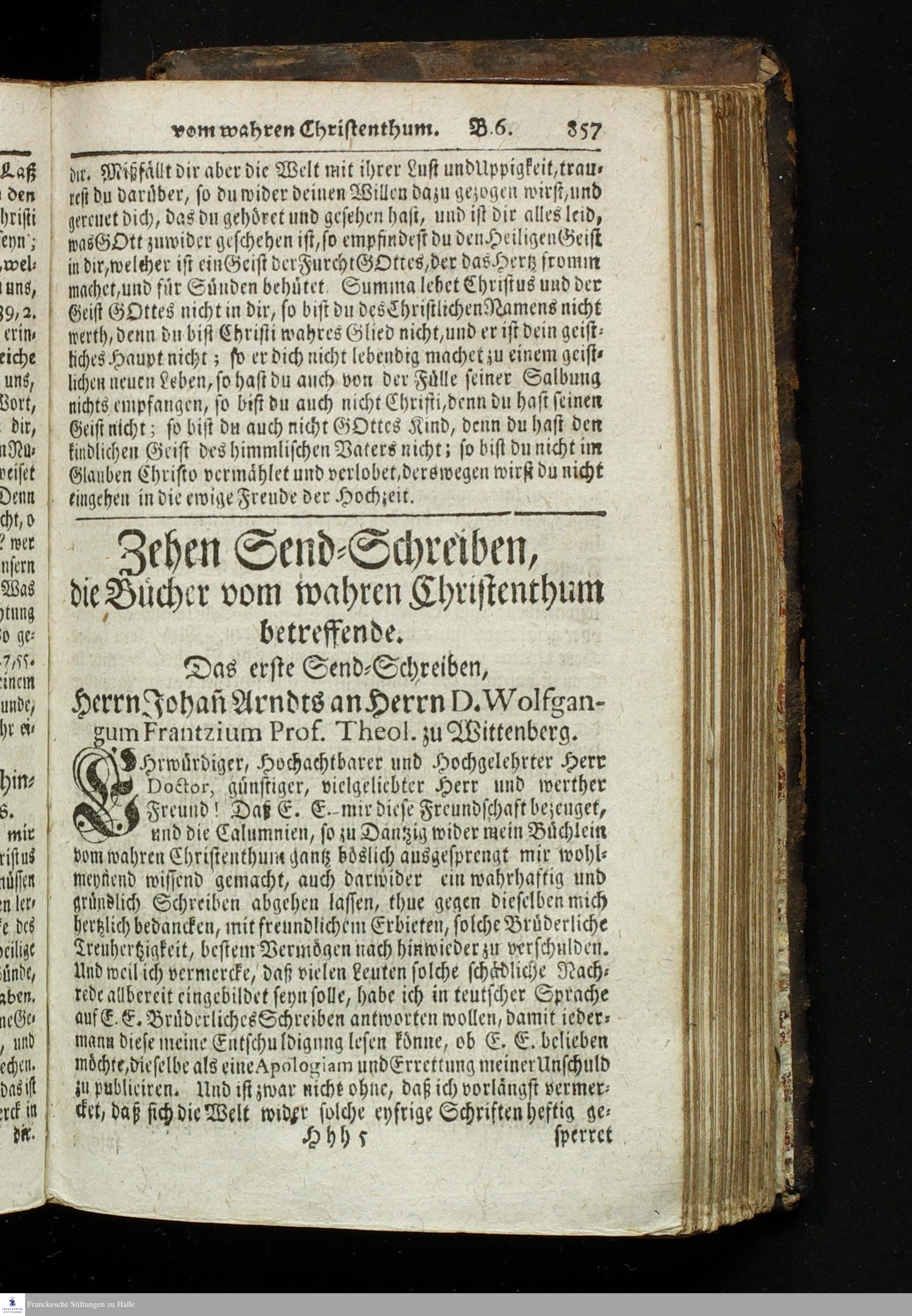 Des Hocherleuchteten Herrn Johann Arnds, Weiland General-Superintendentens des Fürstenthums Lüneburg Sechs Bücher Vom Wahren Christenthum : Das ist: Von der wahren Bekehrung, vom lebendigen Glauben und heiligem Leben rechtschaffener Christen : Nebst Beygefügtem Lebenslauf, Informatorio, Biblico, Gebetern, gewöhnlichen Anhängen und Registern, auch accuraten Summarien,
