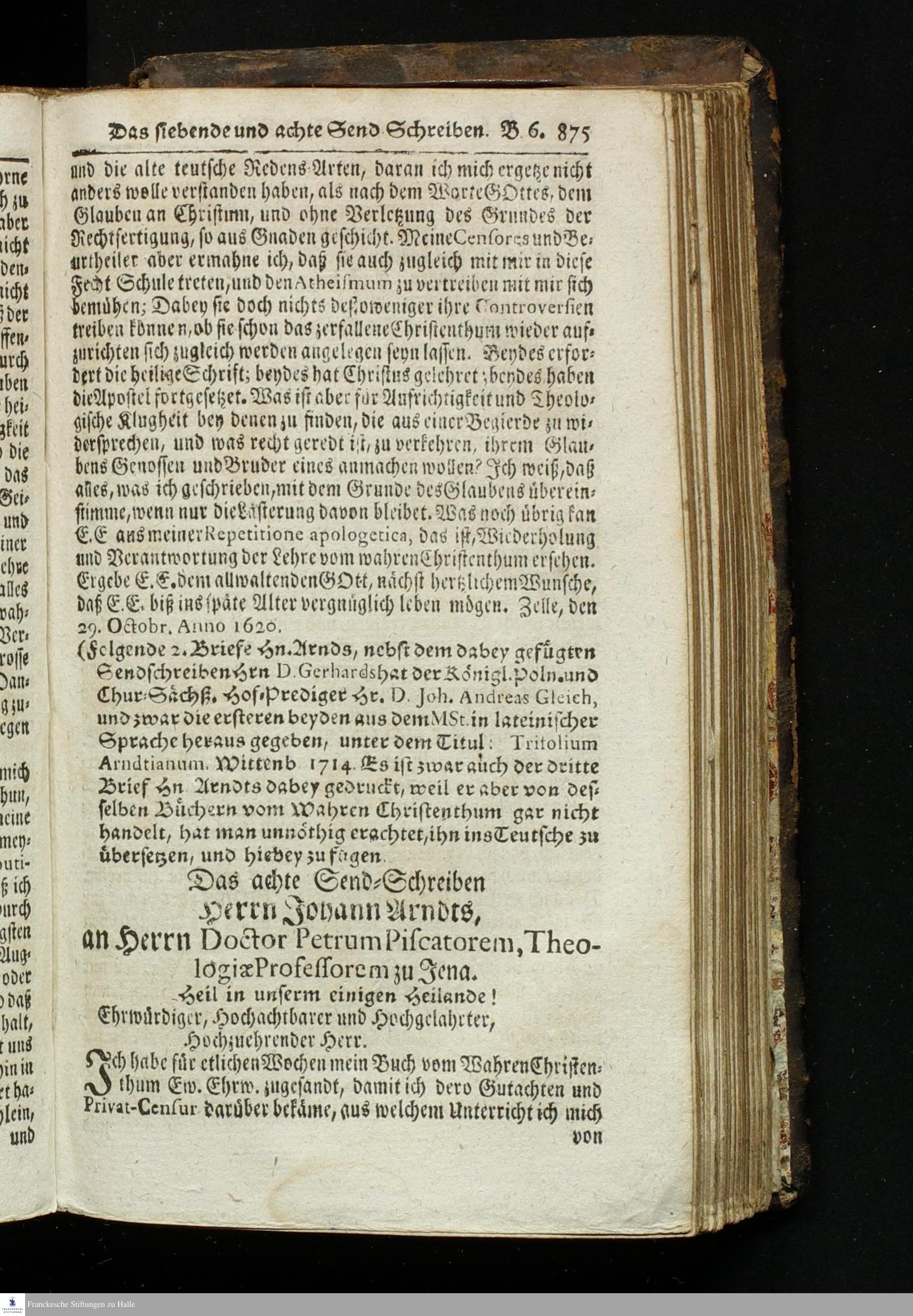 Des Hocherleuchteten Herrn Johann Arnds, Weiland General-Superintendentens des Fürstenthums Lüneburg Sechs Bücher Vom Wahren Christenthum : Das ist: Von der wahren Bekehrung, vom lebendigen Glauben und heiligem Leben rechtschaffener Christen : Nebst Beygefügtem Lebenslauf, Informatorio, Biblico, Gebetern, gewöhnlichen Anhängen und Registern, auch accuraten Summarien,