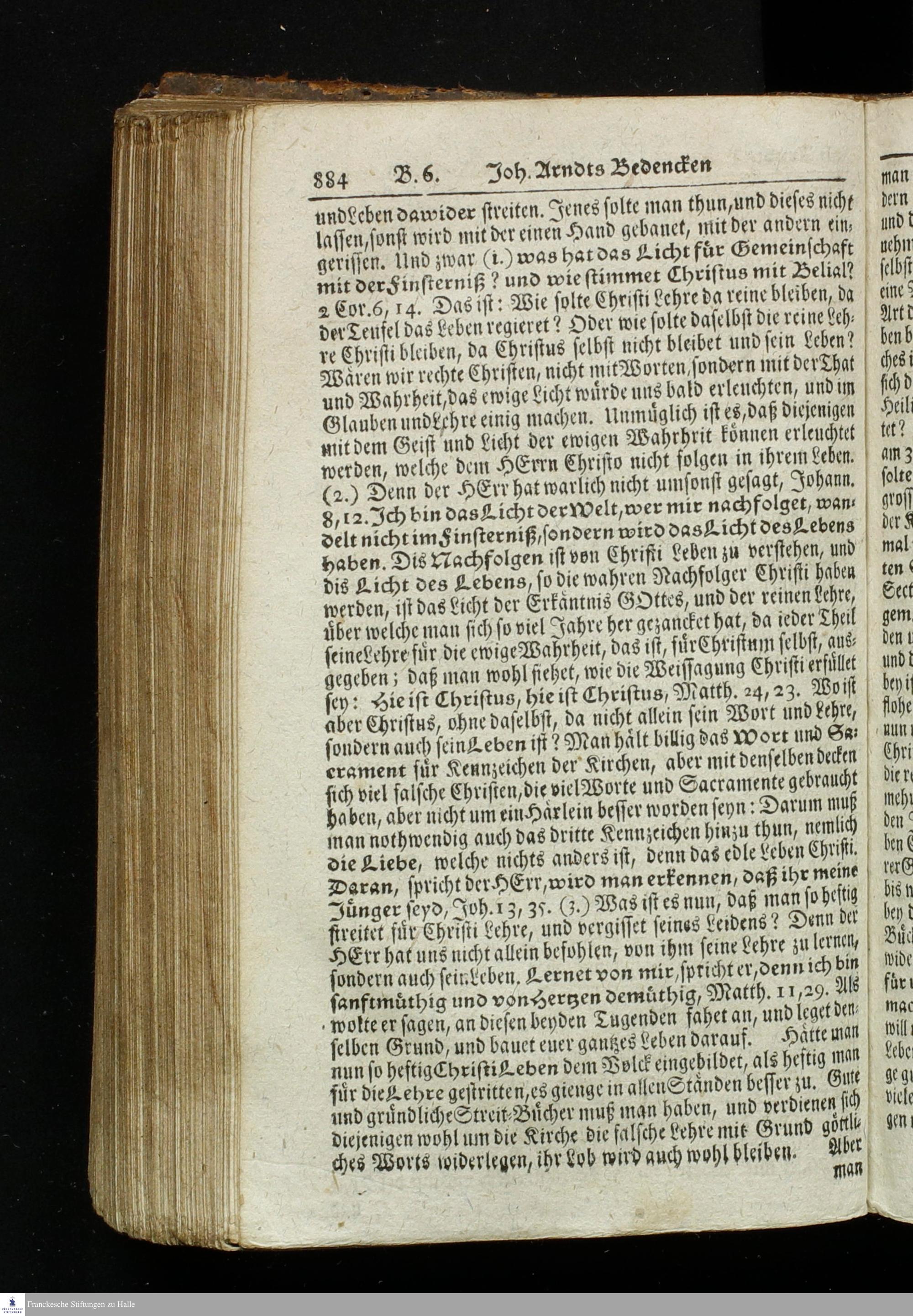 Des Hocherleuchteten Herrn Johann Arnds, Weiland General-Superintendentens des Fürstenthums Lüneburg Sechs Bücher Vom Wahren Christenthum : Das ist: Von der wahren Bekehrung, vom lebendigen Glauben und heiligem Leben rechtschaffener Christen : Nebst Beygefügtem Lebenslauf, Informatorio, Biblico, Gebetern, gewöhnlichen Anhängen und Registern, auch accuraten Summarien,