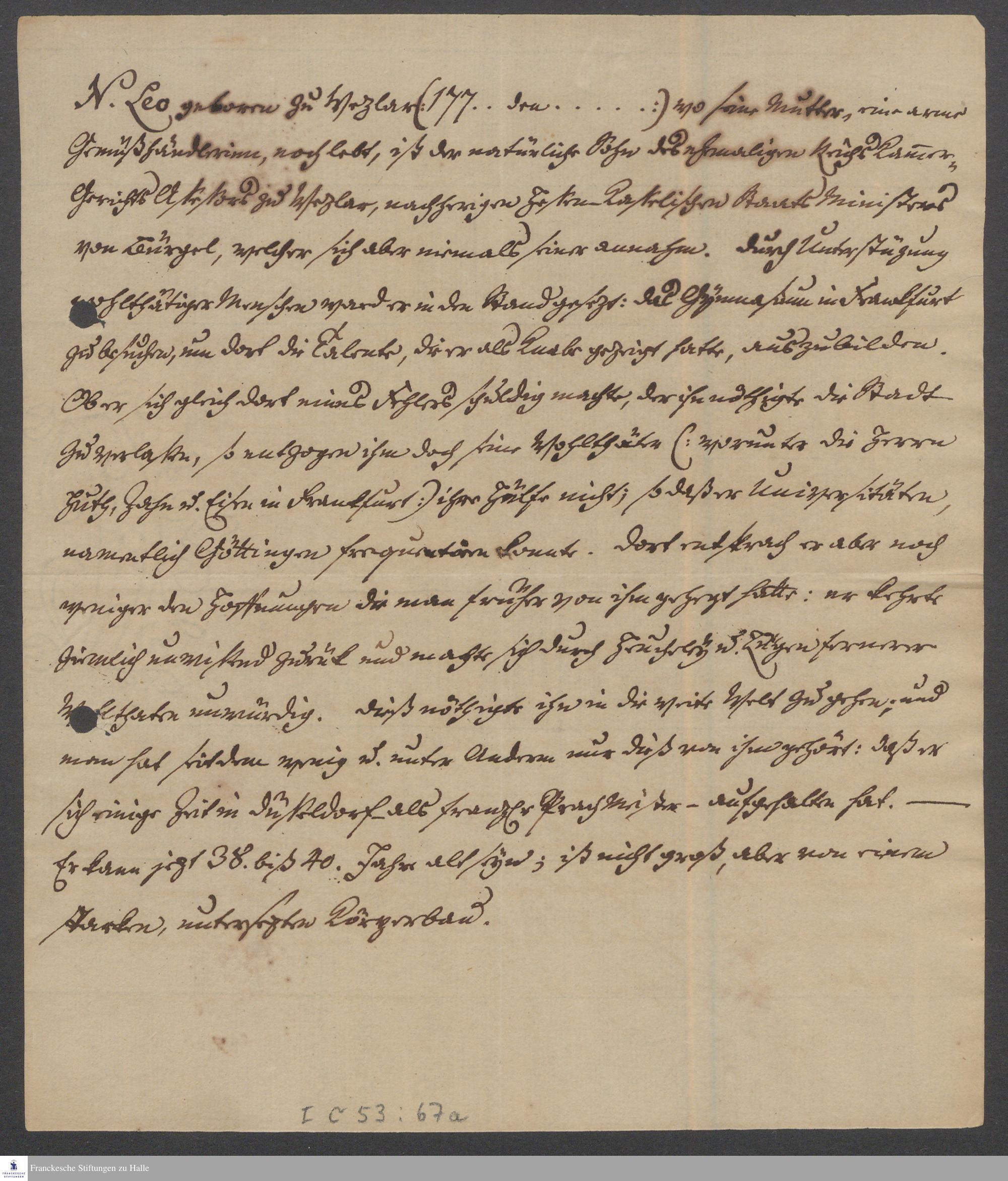 Fragment einer Biografie von Friedrich Leo von [Constantin von Neurath].