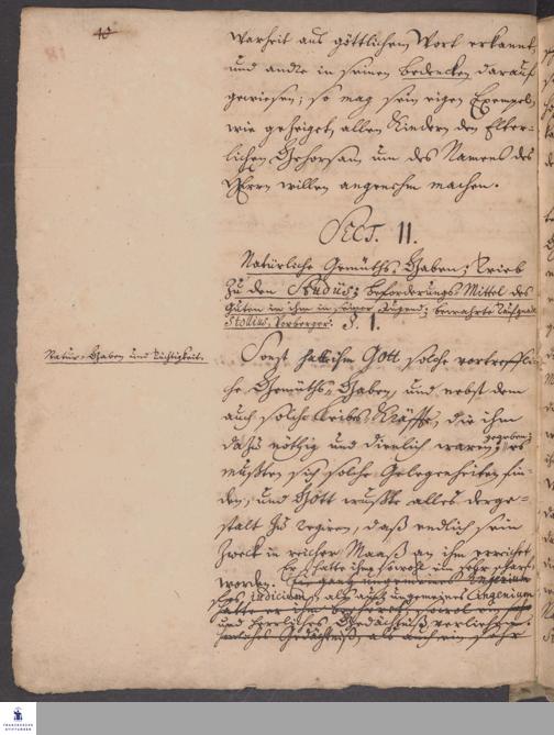 Sect. II. Natürliche Gemüthsgaben; Trieb zu den Studiis; Beforderungsmittel des Guten...