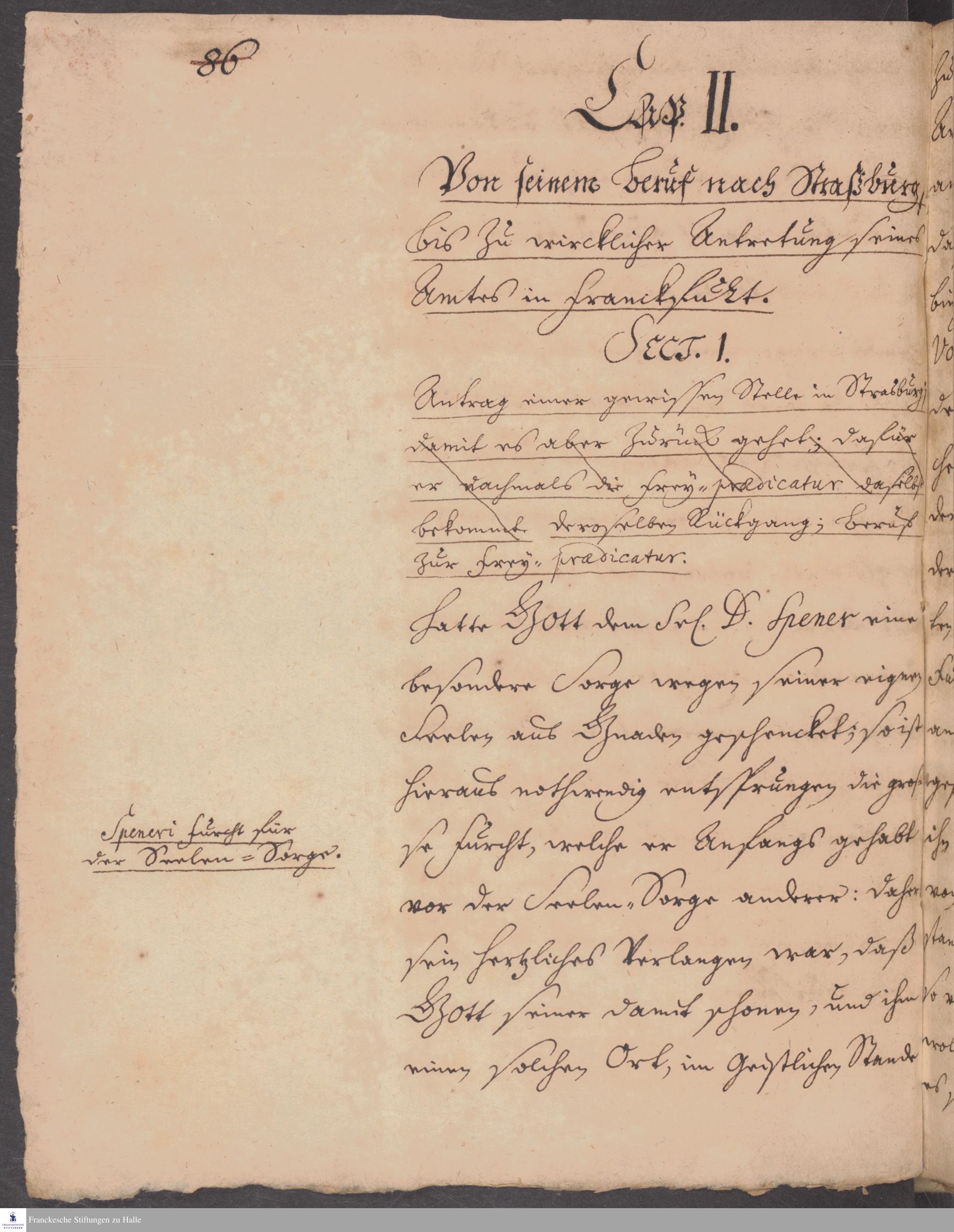Sect. I. Antrag einer gewissen Stelle in Strasburg, deroselben Rückgang; Beruf zur Freypraedicatur.
