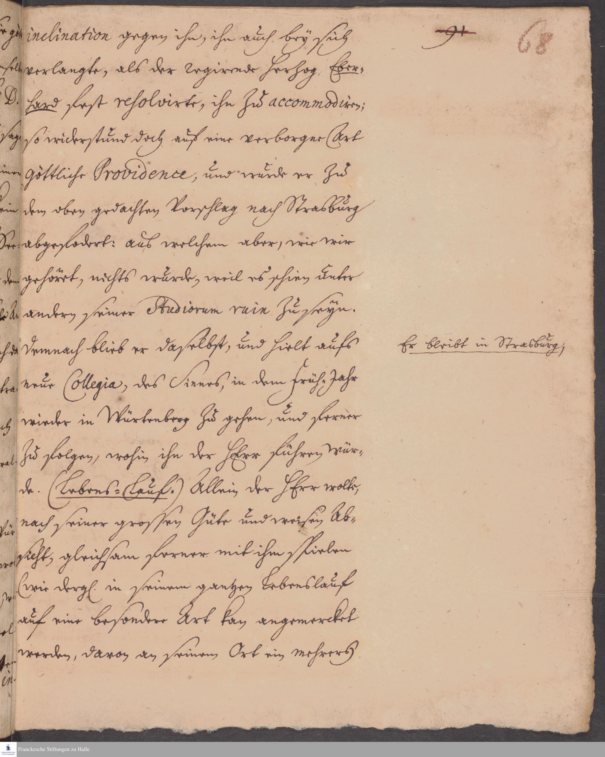 Fragment einer Biografie von Philipp Jakob Spener, verfasst von Carl Hildebrand von Canstein.